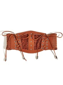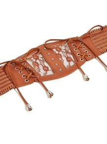 Goth Lace Panel Grommet Lace Up Front Corset Belt