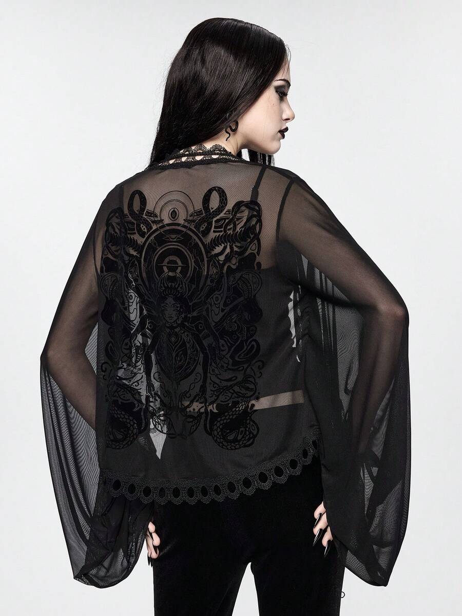 Goth Lace Patchwork Dark Spider Face Horror Snake Ukiyo-E Eye New Chinese Style Flocked Pattern Mesh Lantern Sleeve Cover Up Cover Up