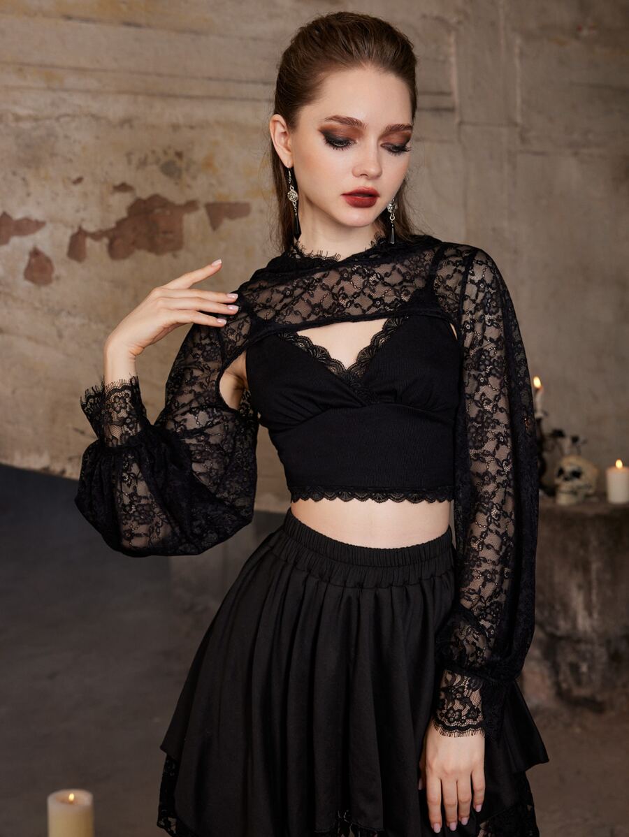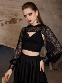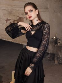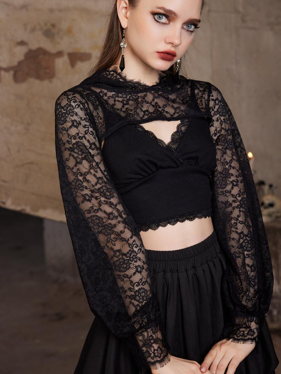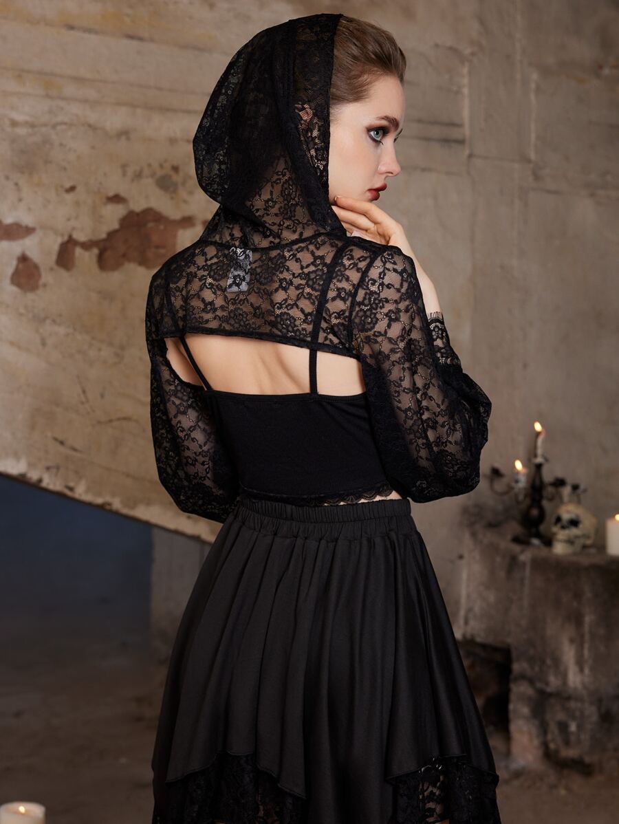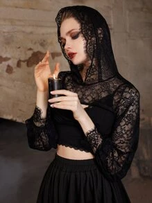 Goth Lace Super Crop Hooded Top