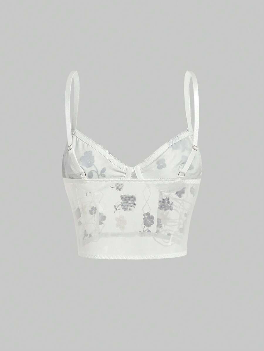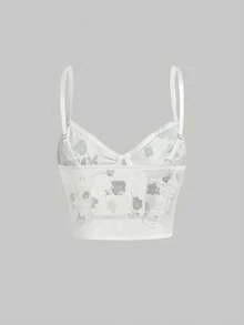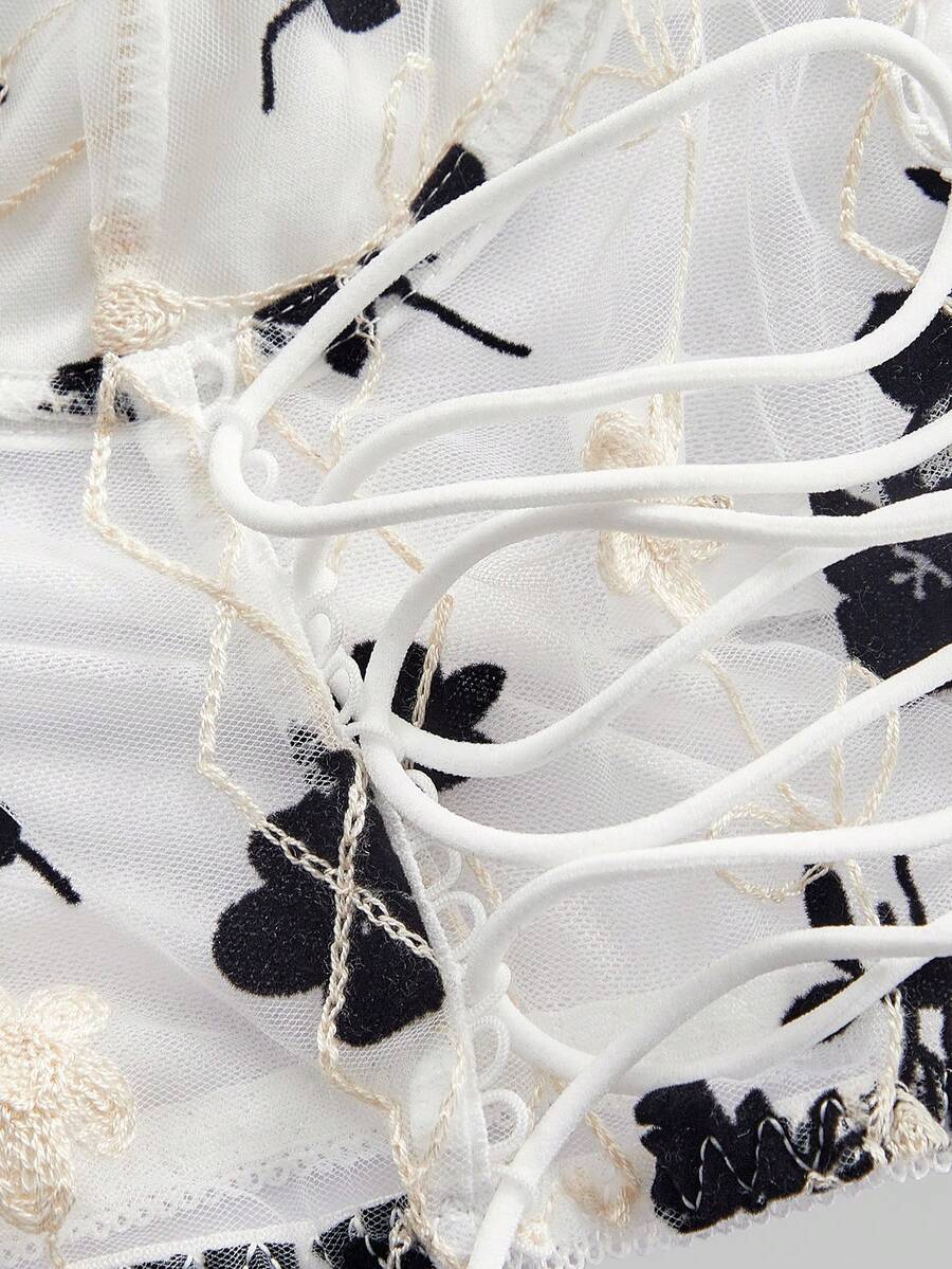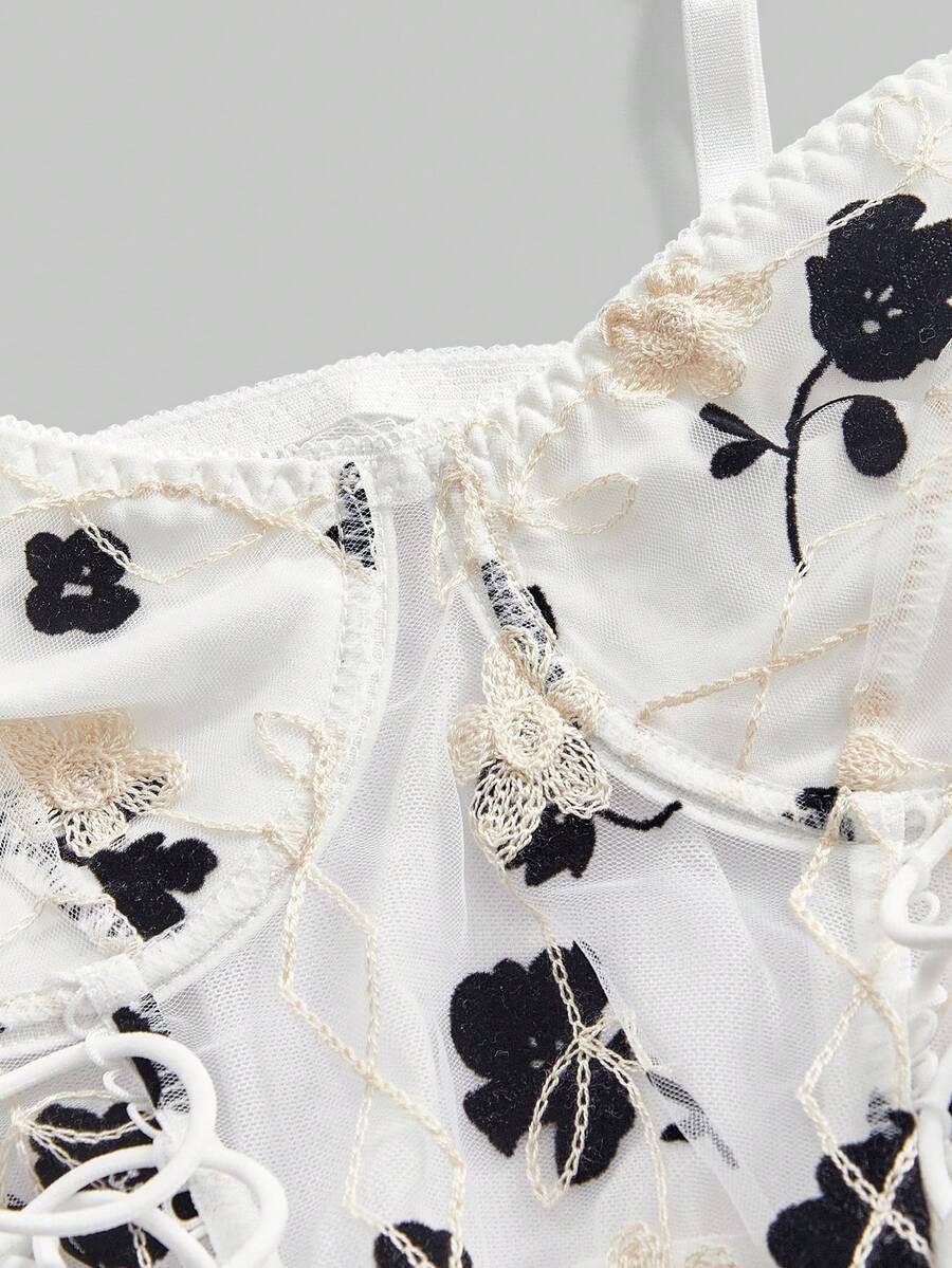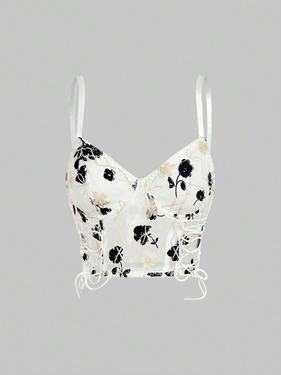 Goth Lace Up Floral Embroidery Crop Cami