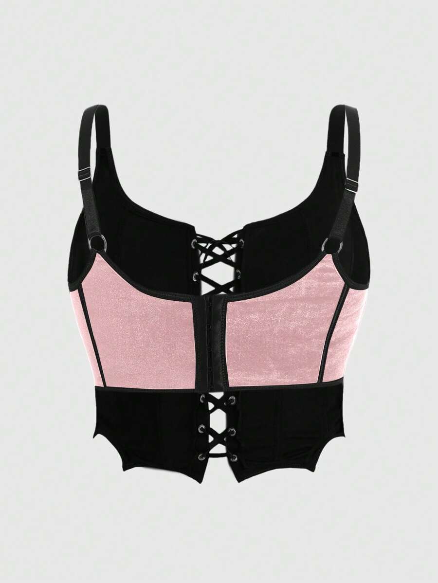 Goth Ladies' Color-block Trim & Tie Shoulder Detail Tank Top