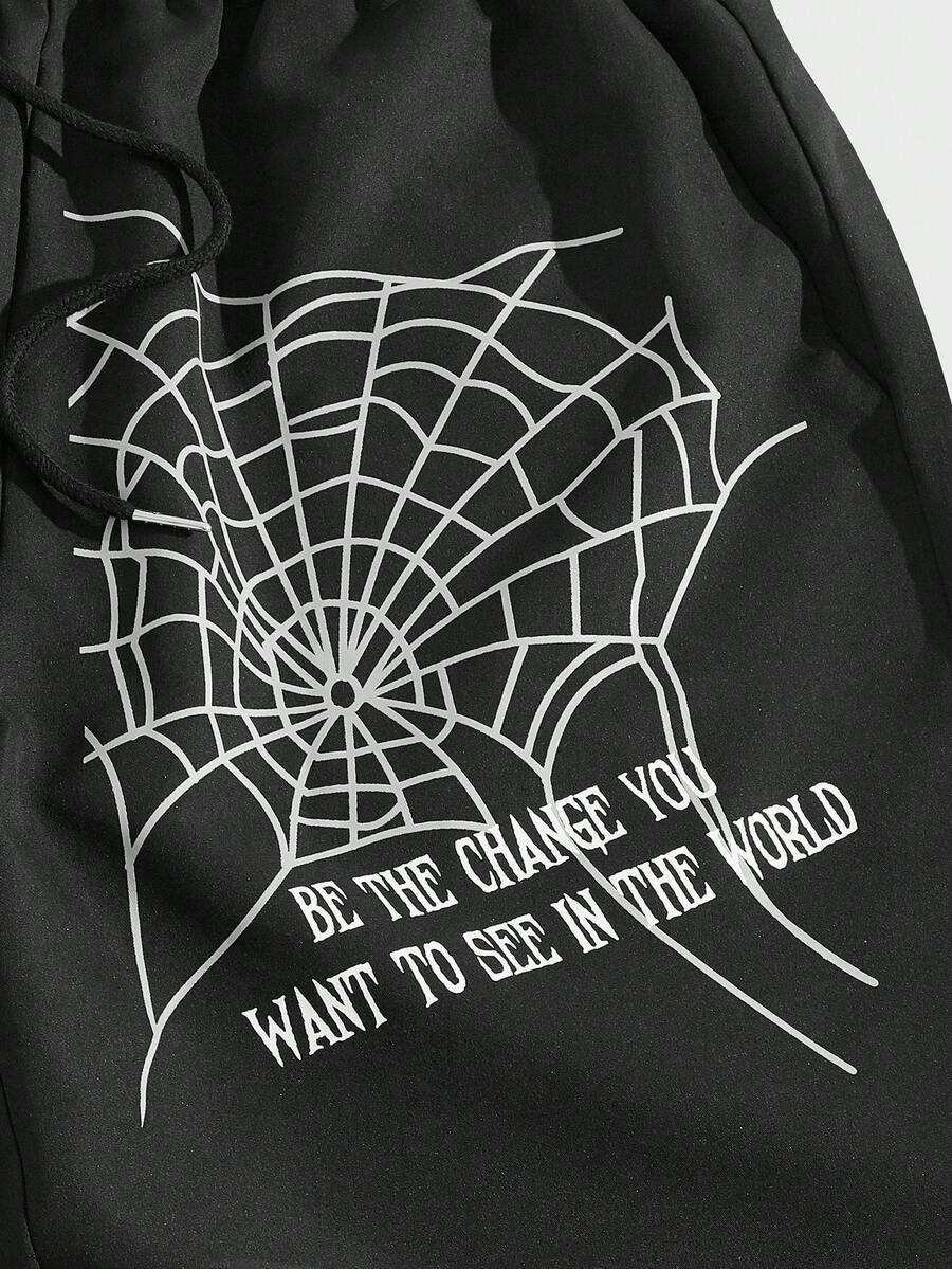 Goth Men Spider Web & Letter Graphic Drawstring Waist Pants
