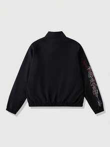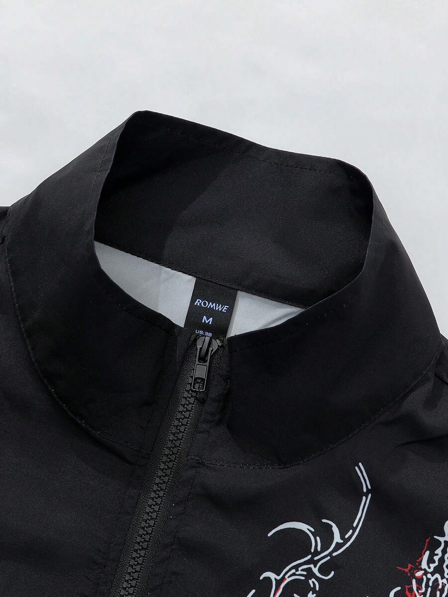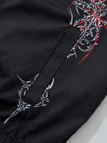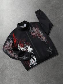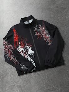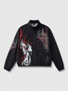 Goth Men's Casual Fashion Street Dark Slogan Cross Print Stand Collar Zip-Up Jacket, Spring/Autumn