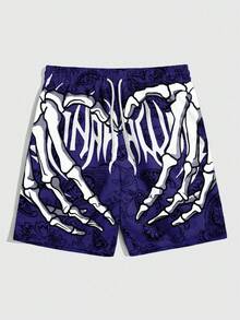 Goth Men's Casual Skull Hand Print Shorts, Summer
