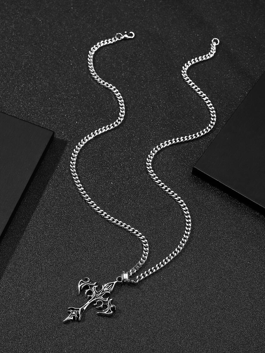 Goth Men's Cross Charm Necklace, For Jewelry Gift And Party