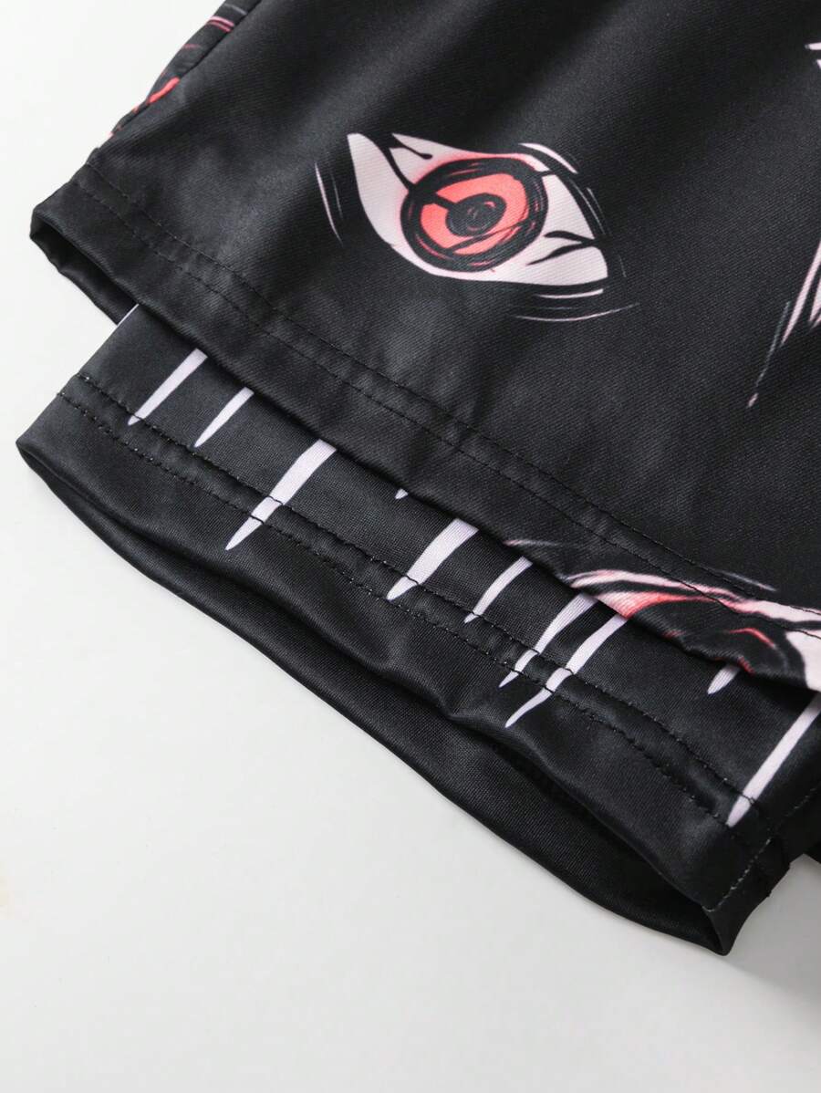 Goth Men's Fashionable Eye Print Drawstring Shorts (2 In 1 Design) For Summer, School