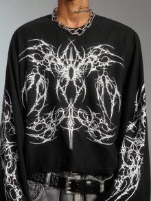 Men's Gothic Print Waffle Fabric Pullover Sweatshirt, Autumn/Winter, Halloween