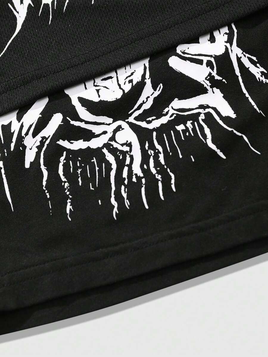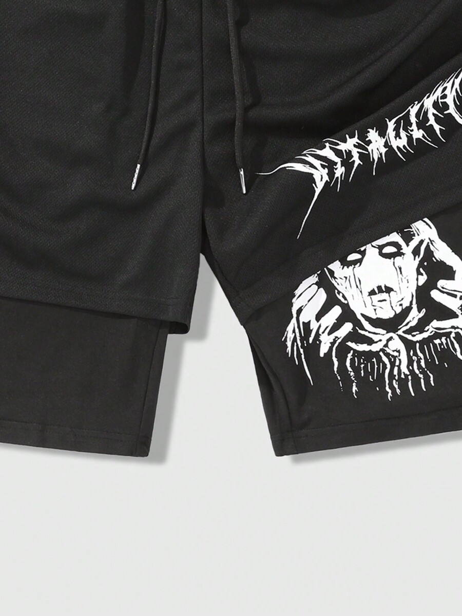 Men's Gothic Printed Breathable Two-In-One Shorts For Daily Casual Wear In Spring And Summer, School