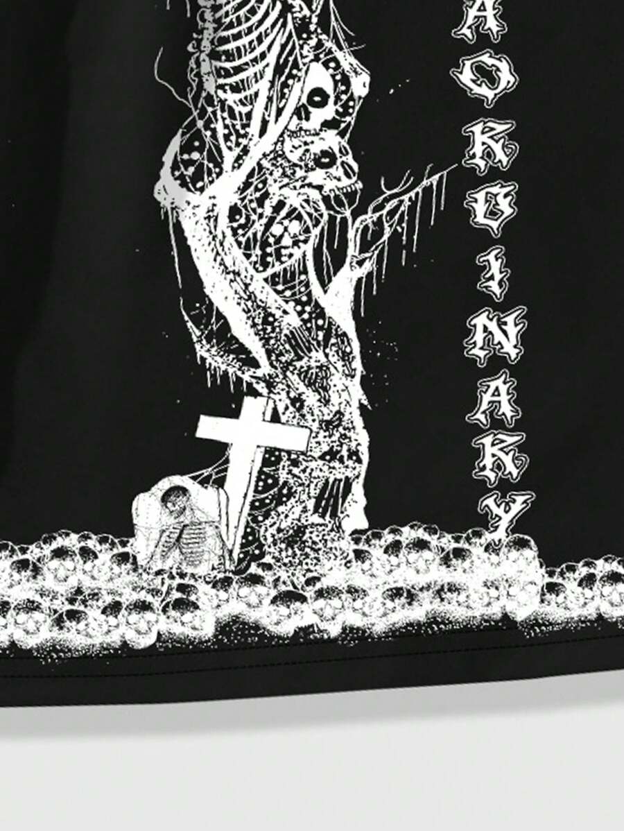 Men's Gothic Printed Shorts, Suitable For Daily Wear In Spring And Summer