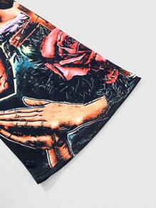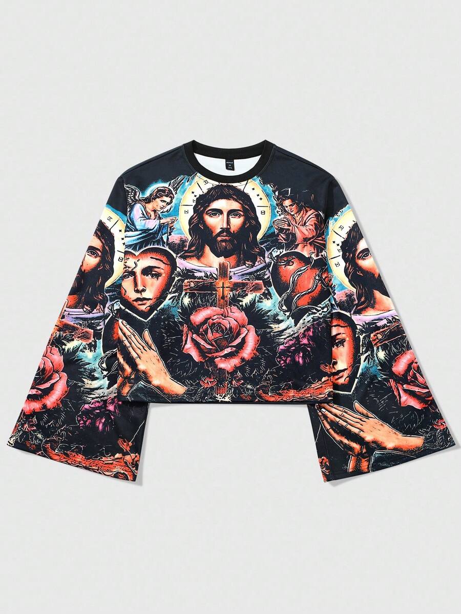 Goth Men's Religious Print Long Sleeve Shirt, Striking Graphic Design, Comfortable Fabric Suitable For Everyday Wear And Music Festivals
