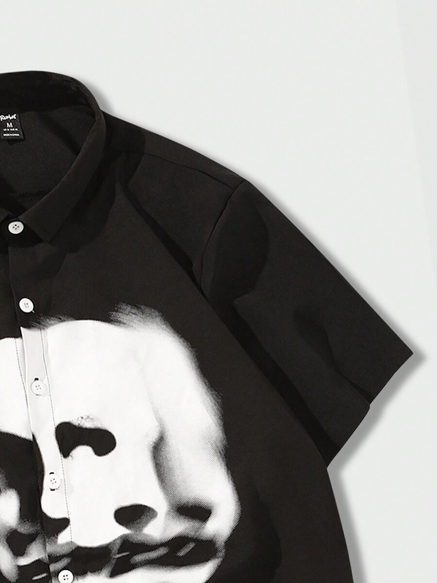 Goth Men's Short Sleeve Shirt With Blurred Portrait Print