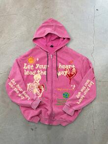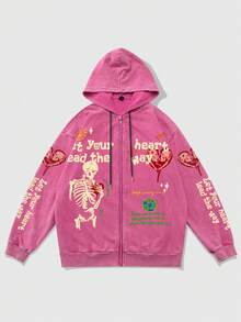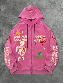 Goth Men's Snowflake & Skull Slogan Print Hoodie Sweatshirt , Fall