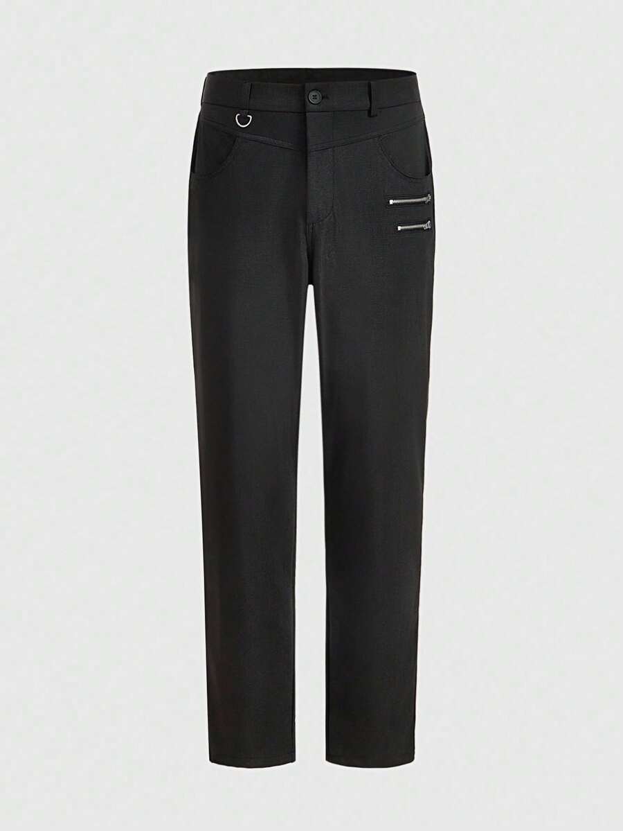 Goth Men's Solid Color Casual Gothic Skinny Pants With Zipper Pockets, For Fall