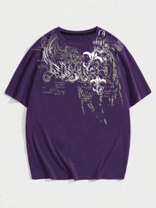 Goth Men's Summer Slogan Print Round Neck Short Sleeve Casual T-Shirt, School