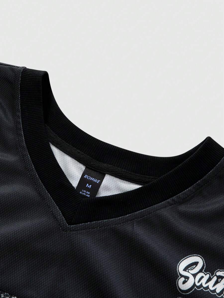 Goth Men's V-Neck Short Sleeve Casual Sports Jersey T-Shirt With Figure Print, Minimalist Design