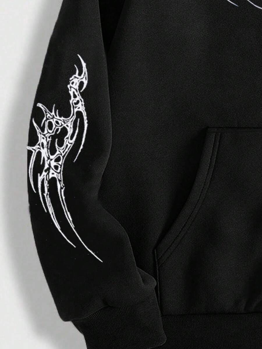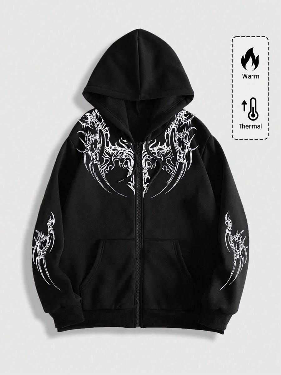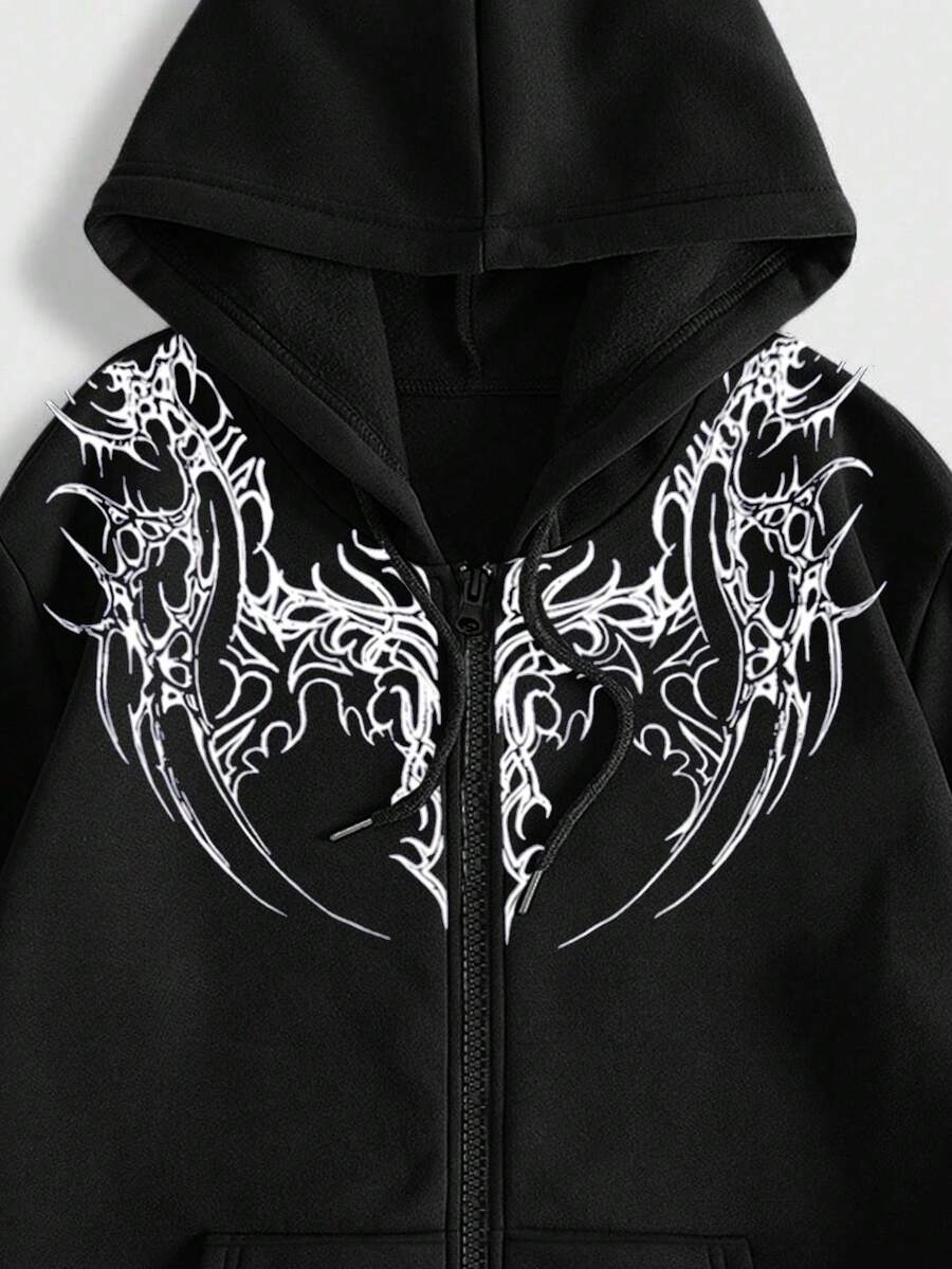 Goth Men's Zipper Closure Drawstring Hooded Long Sleeve Sweatshirt, School, For Fall Winter