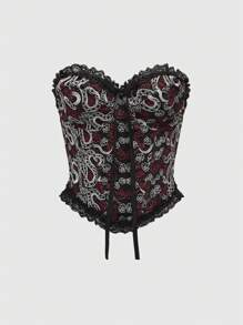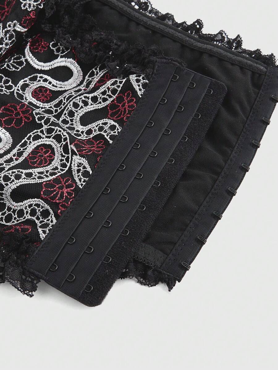 Goth Off-Shoulder Lace Ruffle Floral Embroidered Cami Top For Women