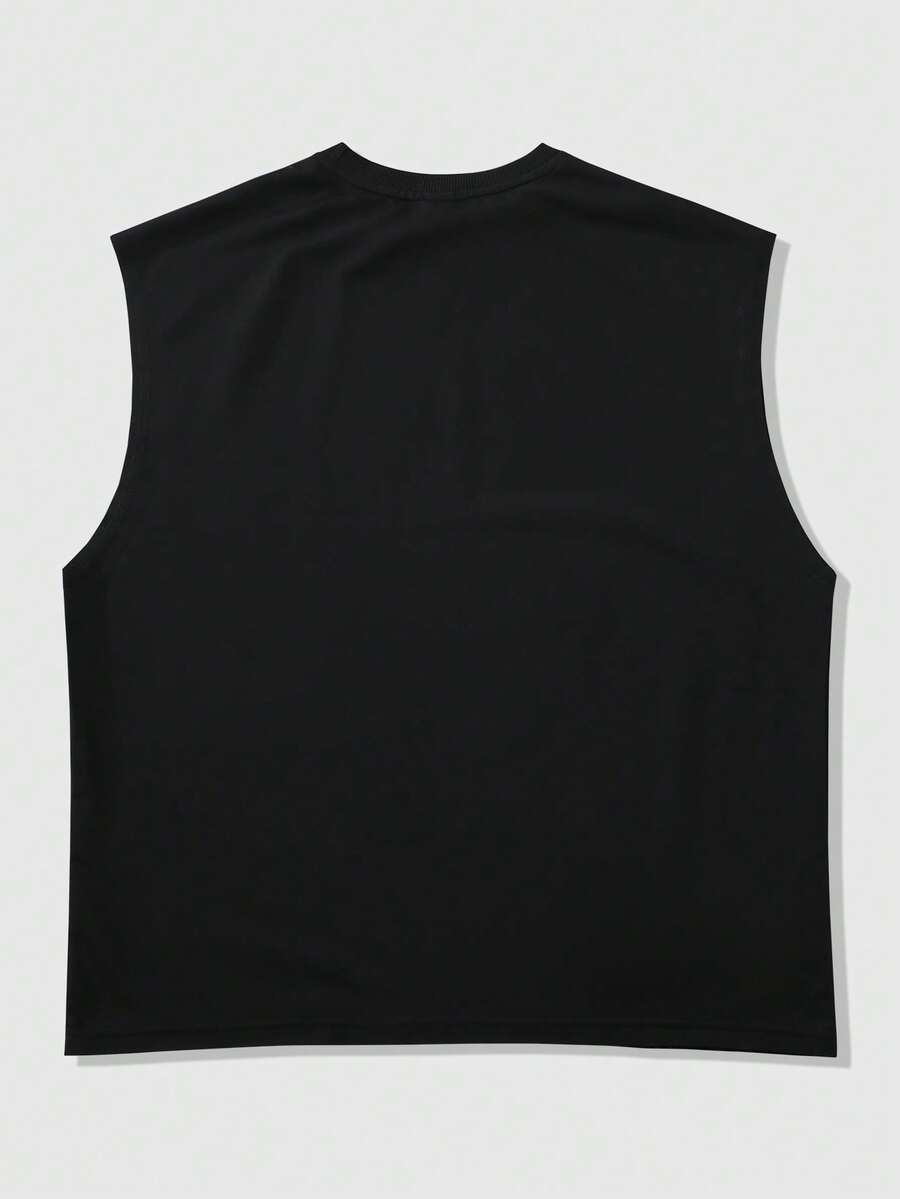 Goth Personalized Street Style Men's Round Neck Tank Top, Copper Trim On Cuffs & Collar, Religious Graphic Print, Perfect For Streetwear, Music Festivals