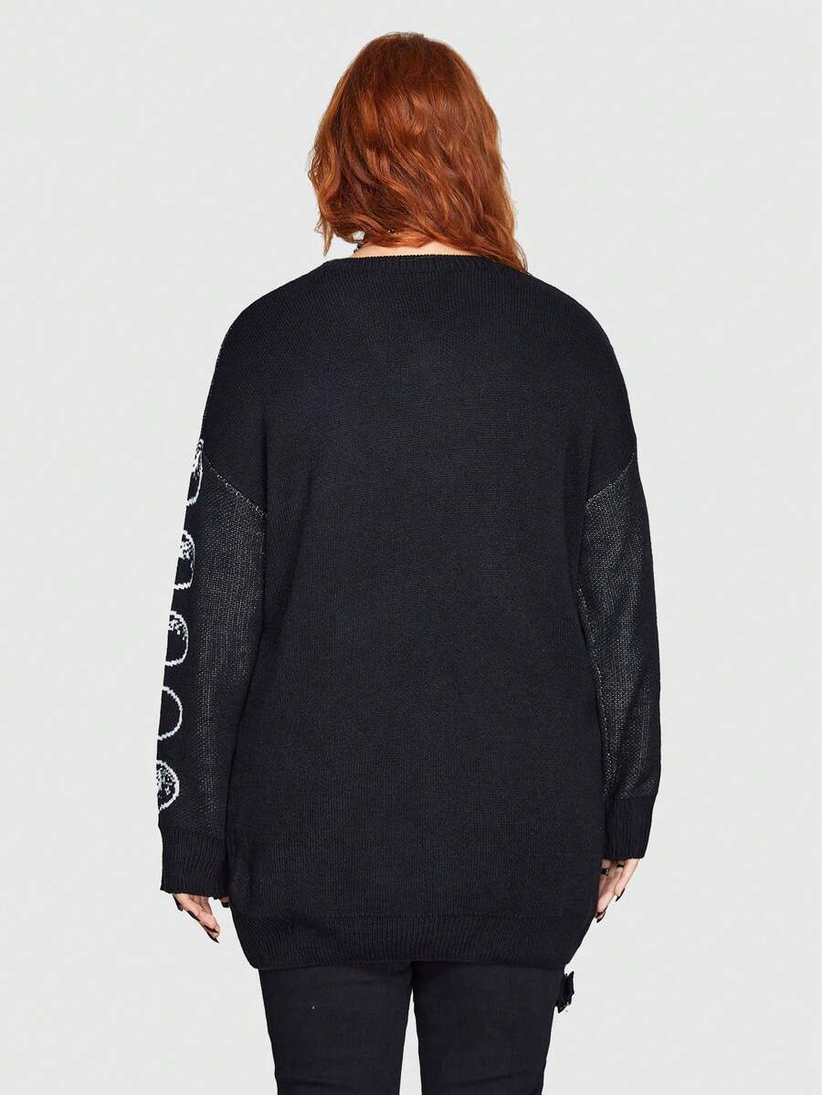 Goth Plus Graphic Pattern Drop Shoulder Sweater