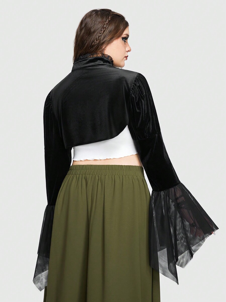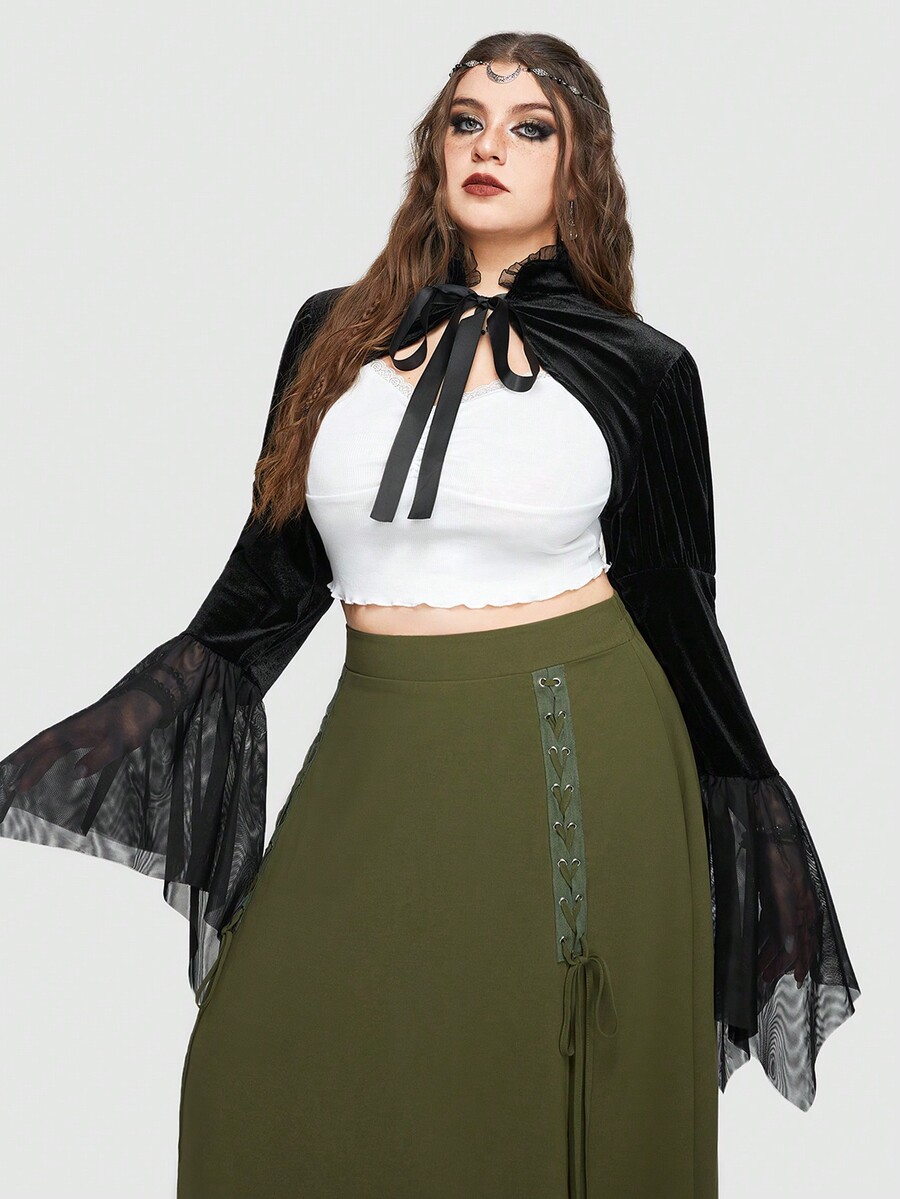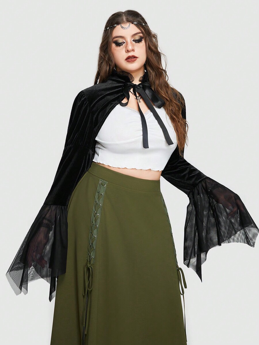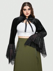 Goth Plus Size Black Velvet Elegant Flare Sleeve Women's Top