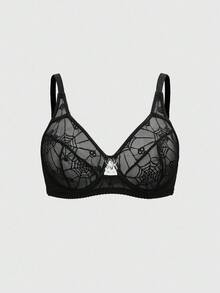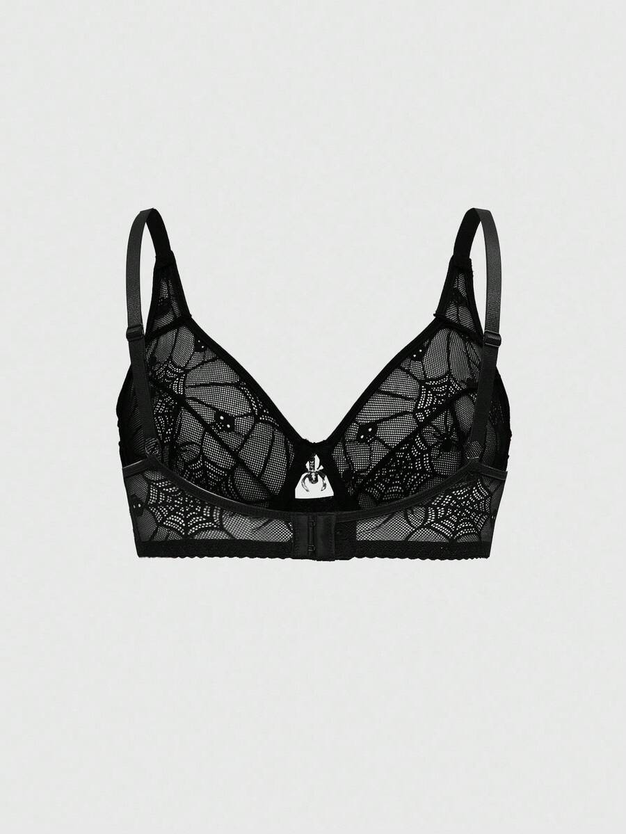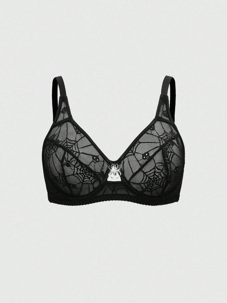 Plus Size Gothic Skeleton, Spider Web, Bat Metal Pendant Underwire Bra