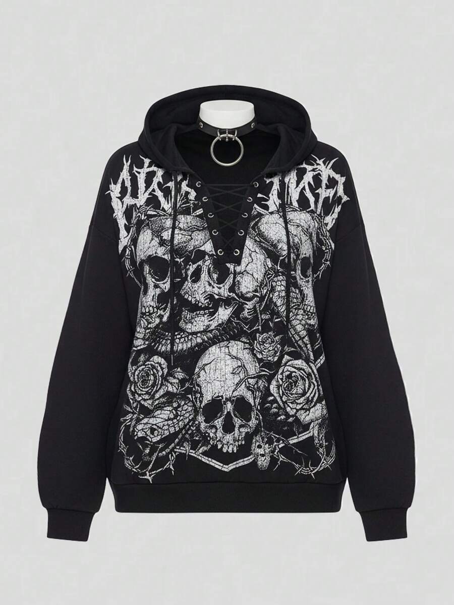 Plus Size Gothic Skull Print Loose Fit Long Sleeve Sweatshirt/Winter