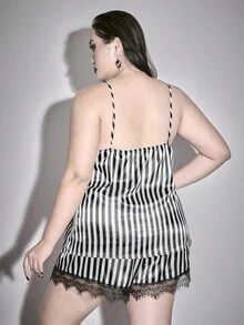 Goth Plus Size Tie-Dye Striped Lace Trim Cami & Shorts Pajama Set