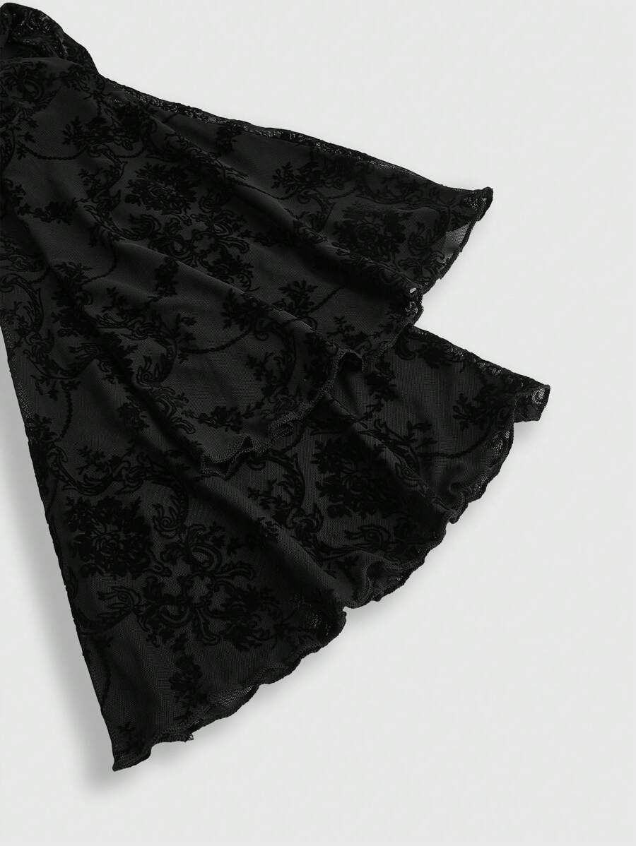 Plus Size Women Gothic Versatile Slit Bell Sleeve Vintage Flocked Cardigan Coat, For Winter