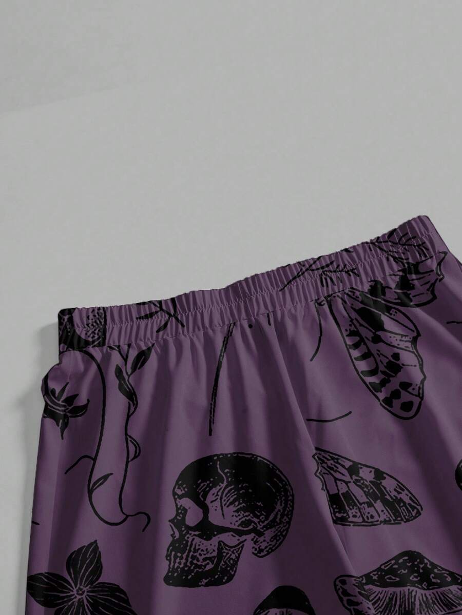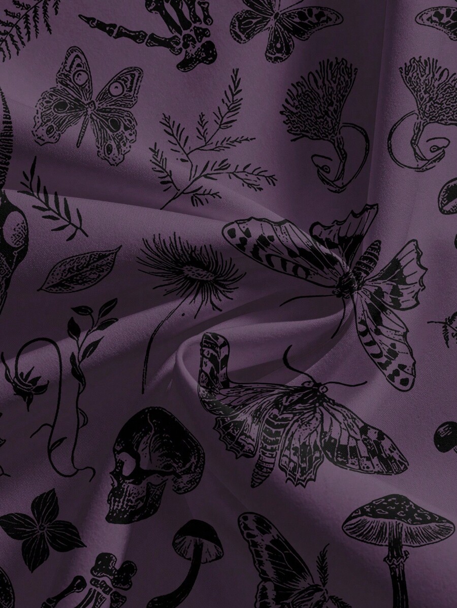Plus Size Women Gothic Witch Dark Palace Skull Moth Plant Butterfly Mushroom Leaf Print Loose Wide Leg Pants, Halloween