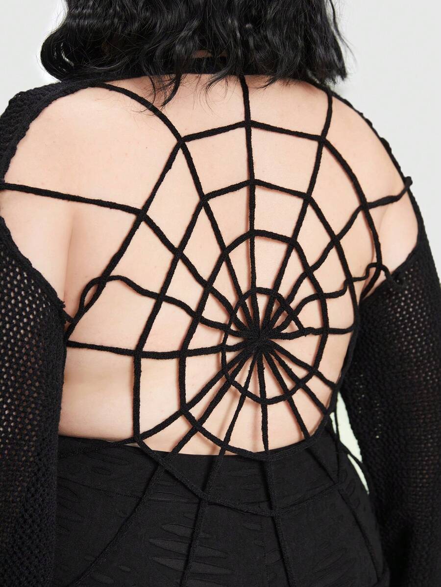 Goth Plus Spider Web Pattern Cut Out Back Drop Shoulder Sweater