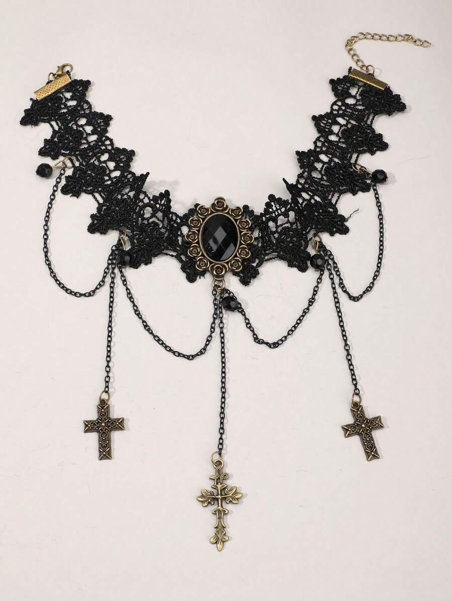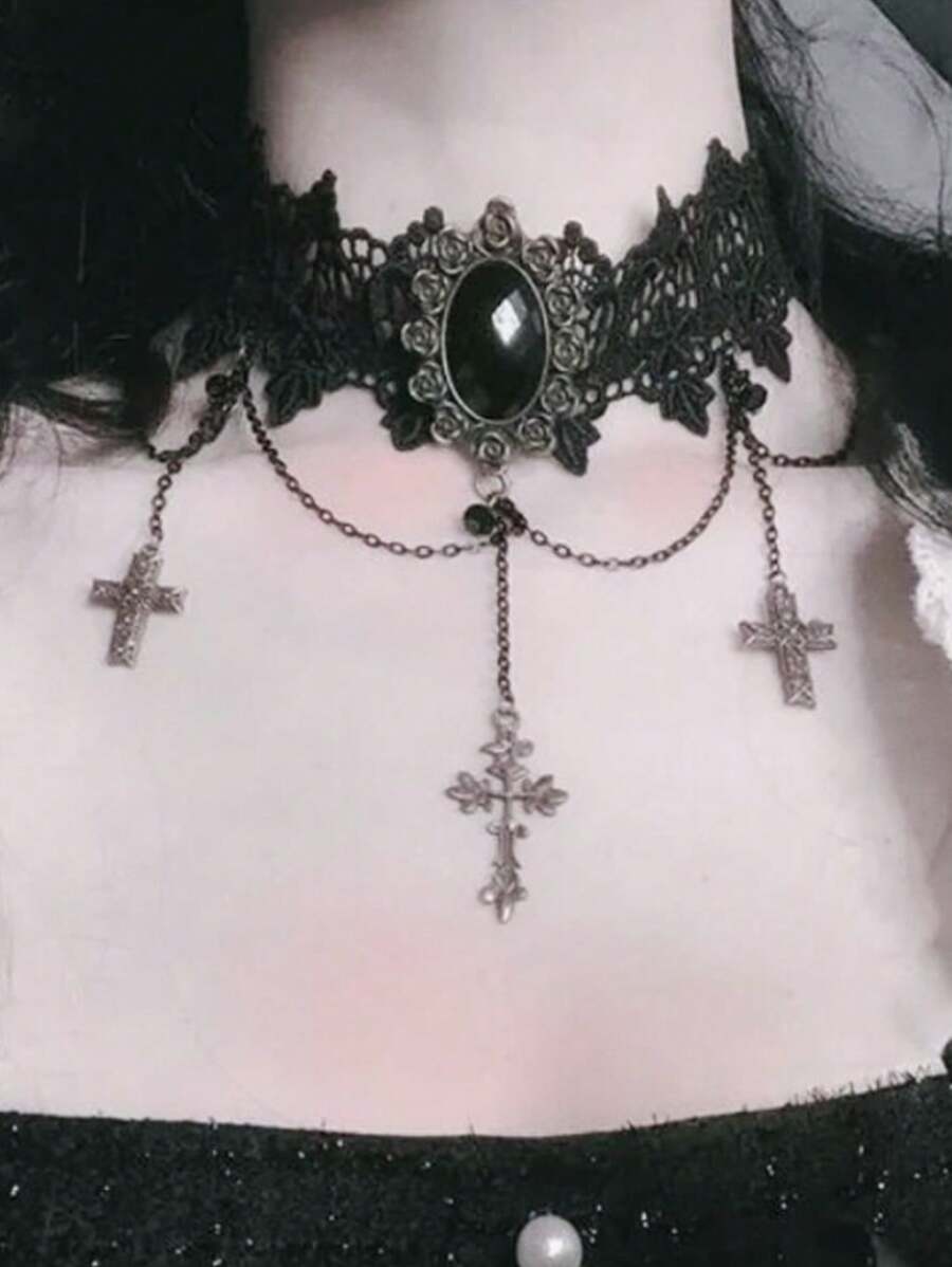 Goth Punk-Style Lace Cross Necklace, Lolita Accessories, Vintage Dark Style Necklace/Choker For Women