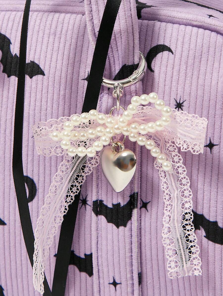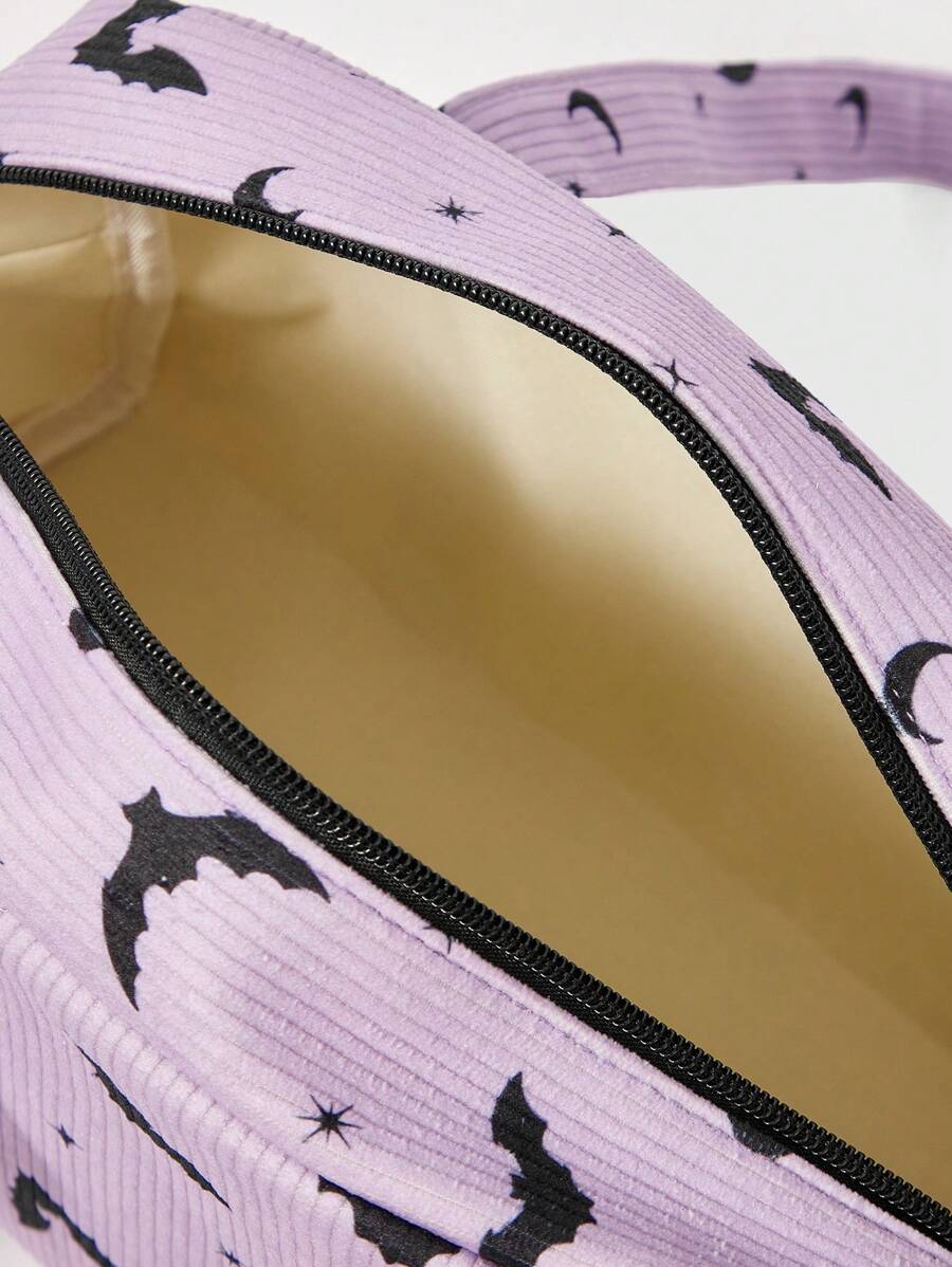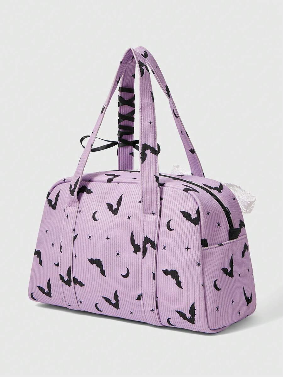 Goth Purple Bat Corduroy Fashion Bow Decor Portable Print Ladies Handbag