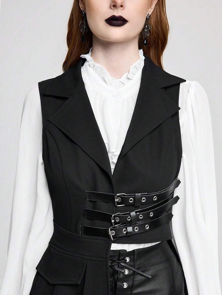 Retro Unisex Gothic Style Asymmetrical Hem Sleeveless Fitted Women Jacket