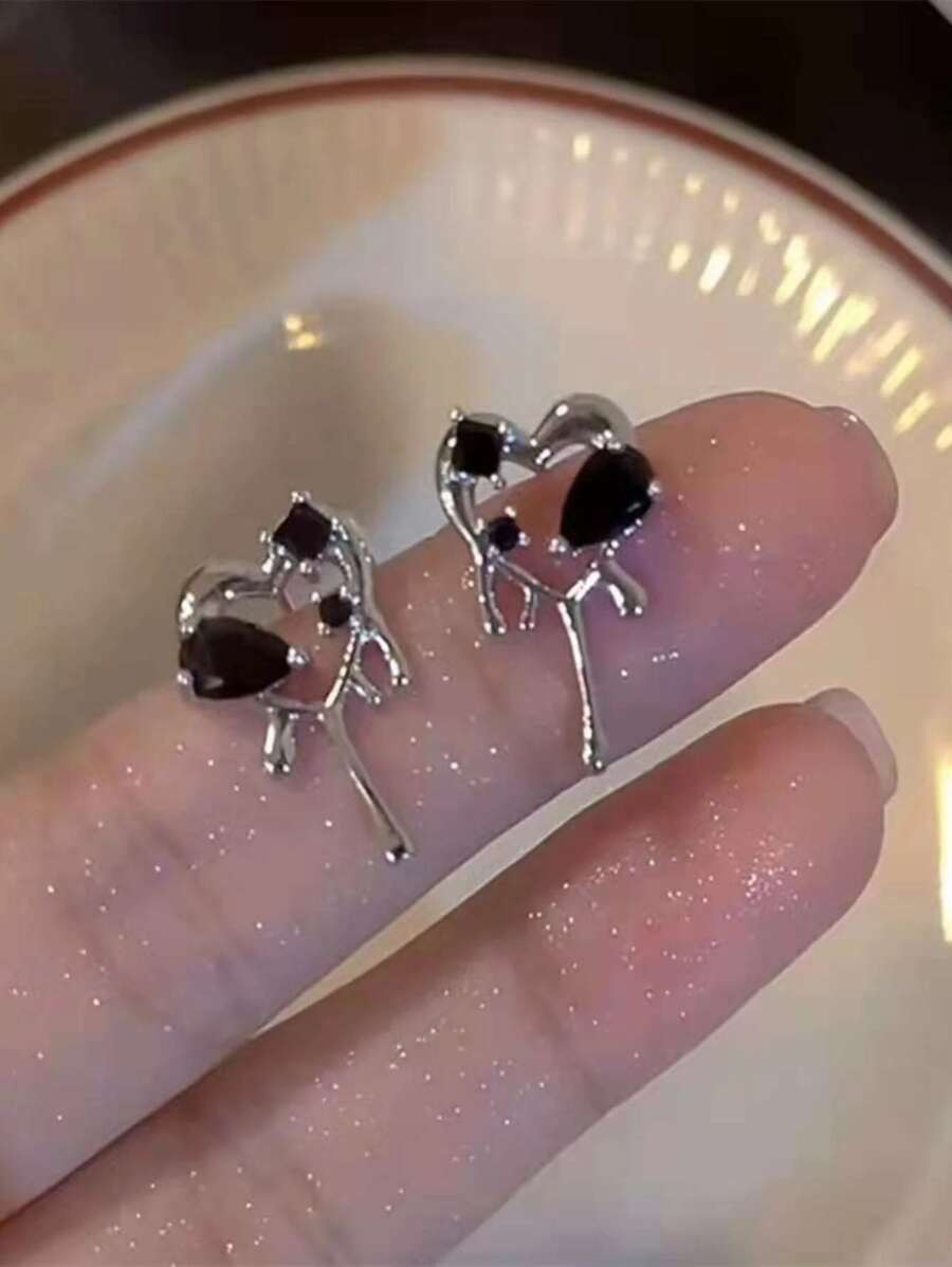 Goth Rhinestone Detail Heart Shaped Stud Earrings