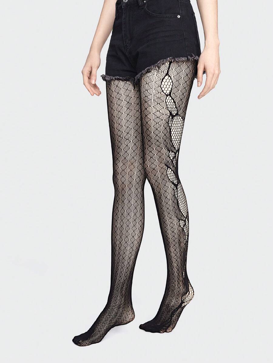 Goth Sexy 3D Knitted Hollow Out Floral Lace Pantyhose, Unique Design Fishnet Stockings
