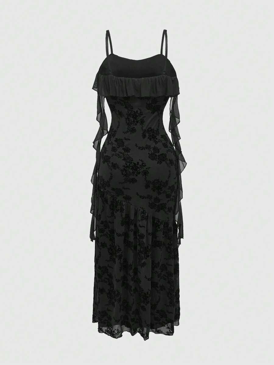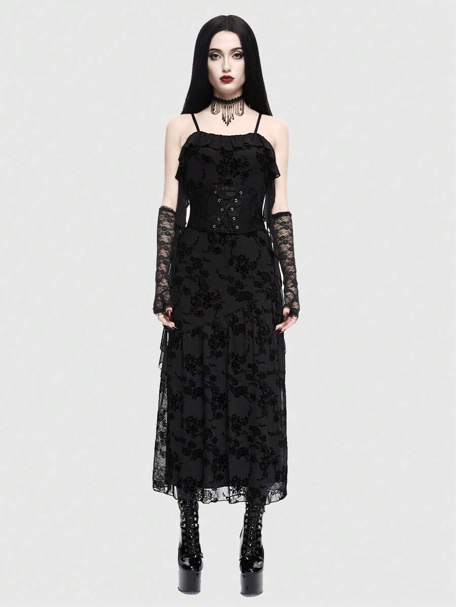 Goth Sexy And Romantic Rose Velvety Mermaid Style Spaghetti Strap Dress