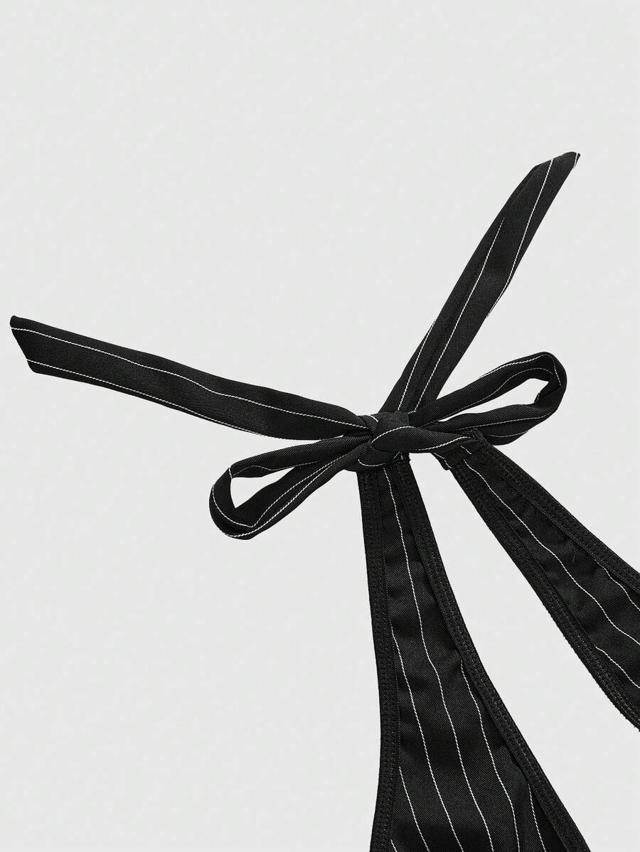 Goth Sexy Office Siren Striped Fishbone Halter Neck Bustier Camisole