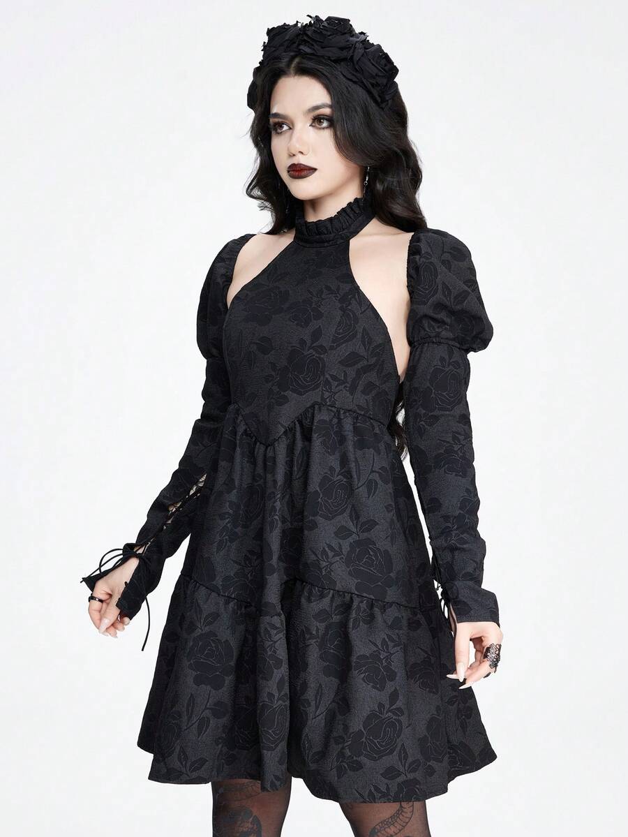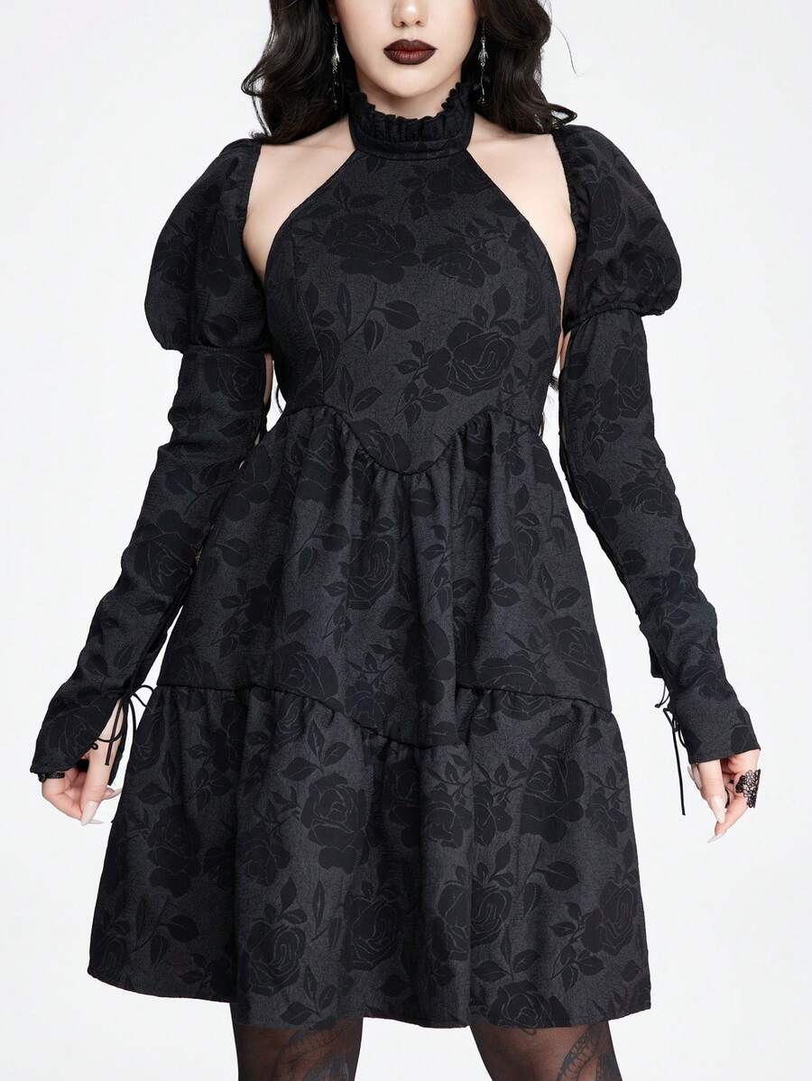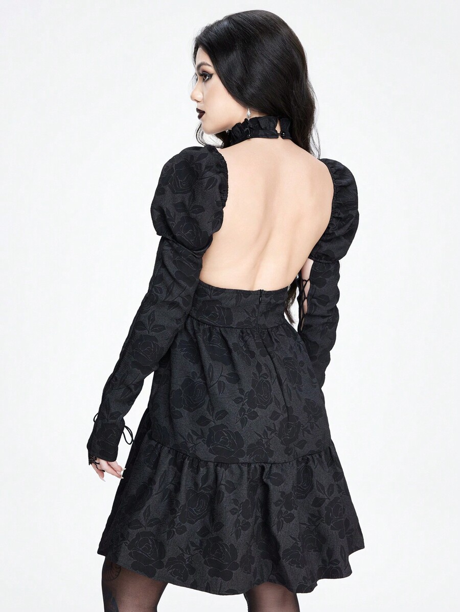 Goth Sexy Pure Temptation Party Neck Tie Butterfly Sleeve Puff Sleeve Backless Princess Cinched Bodycon Dress For Women