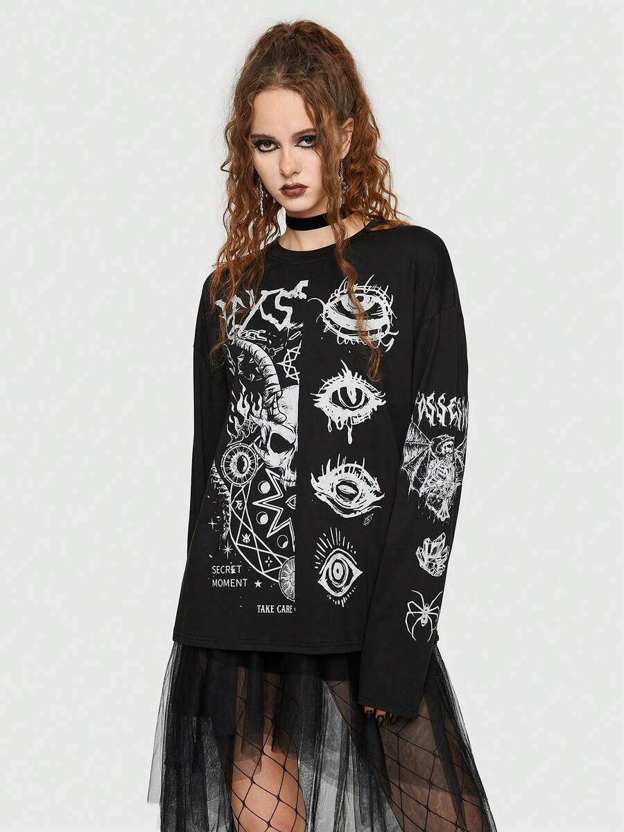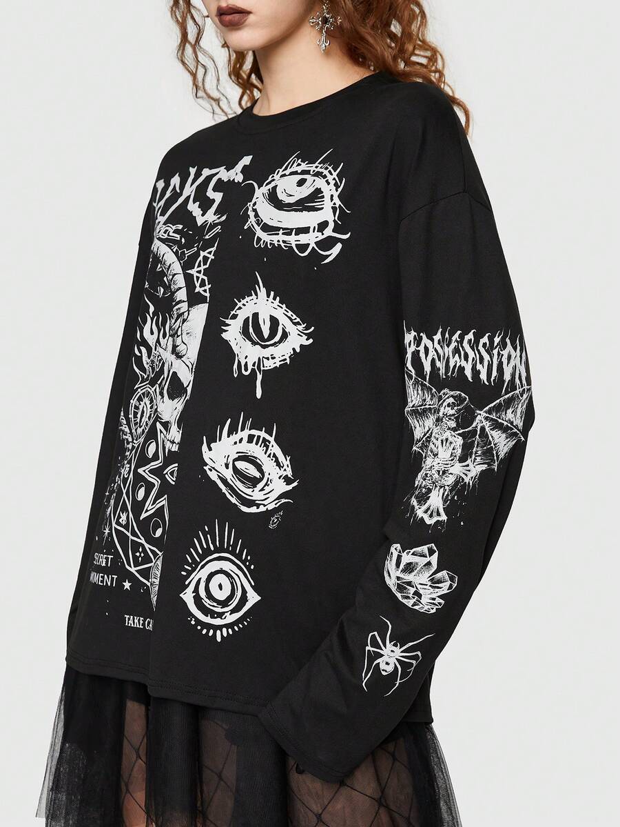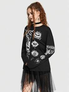 Goth Skull & Eye Print Tee