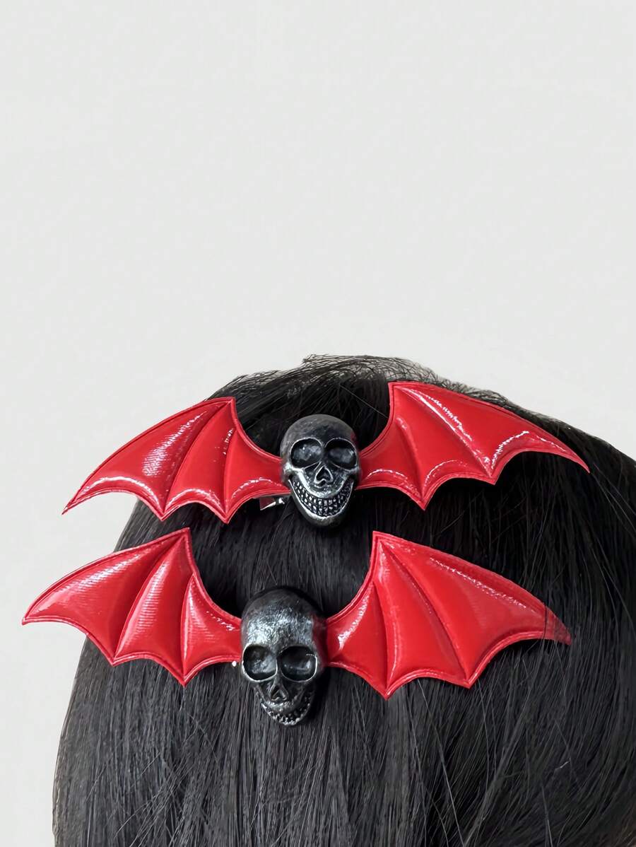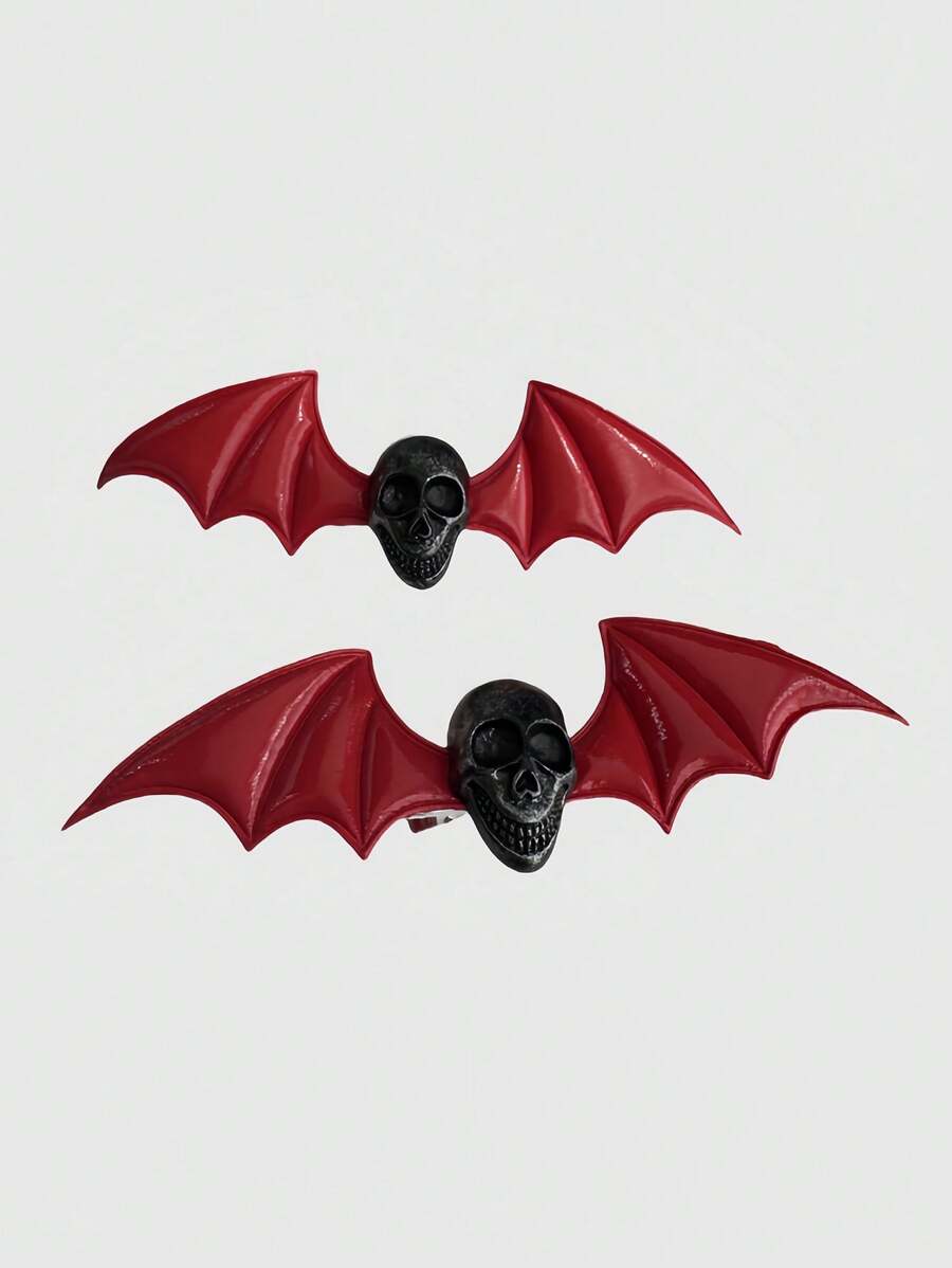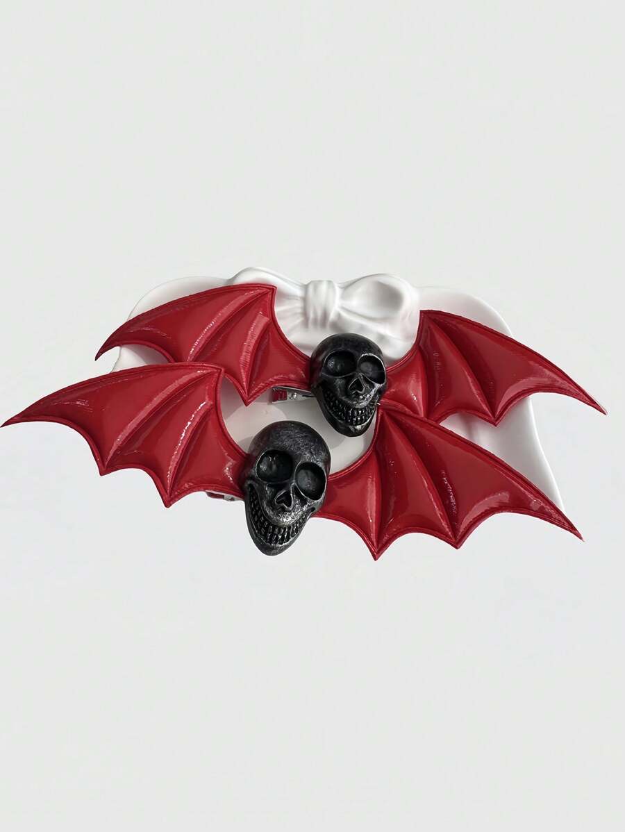 Skull & Wing Hair Clip, Goth Lolita Punk Metal Decor Hair Accessory