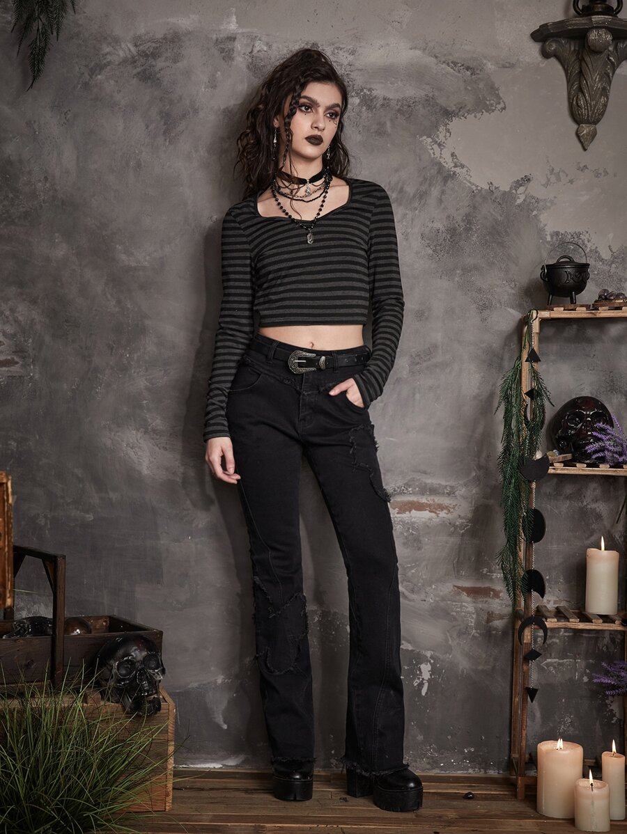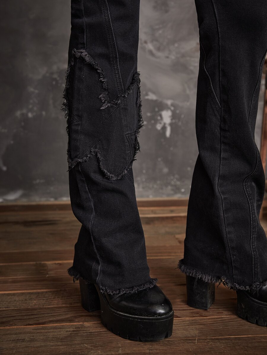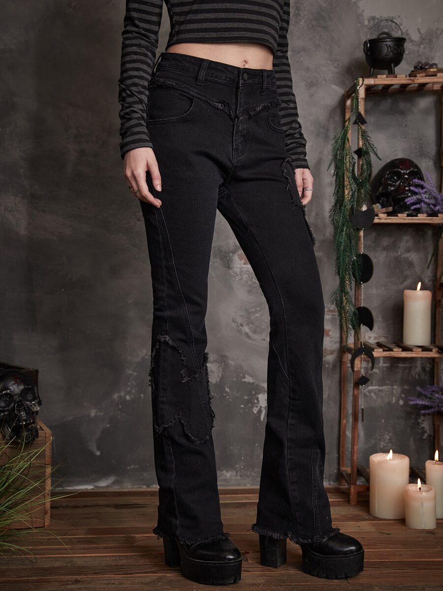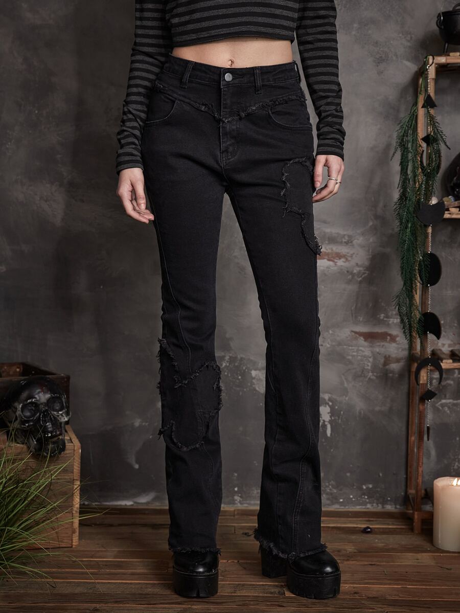 Goth Solid Distressed Flare Leg Jeans