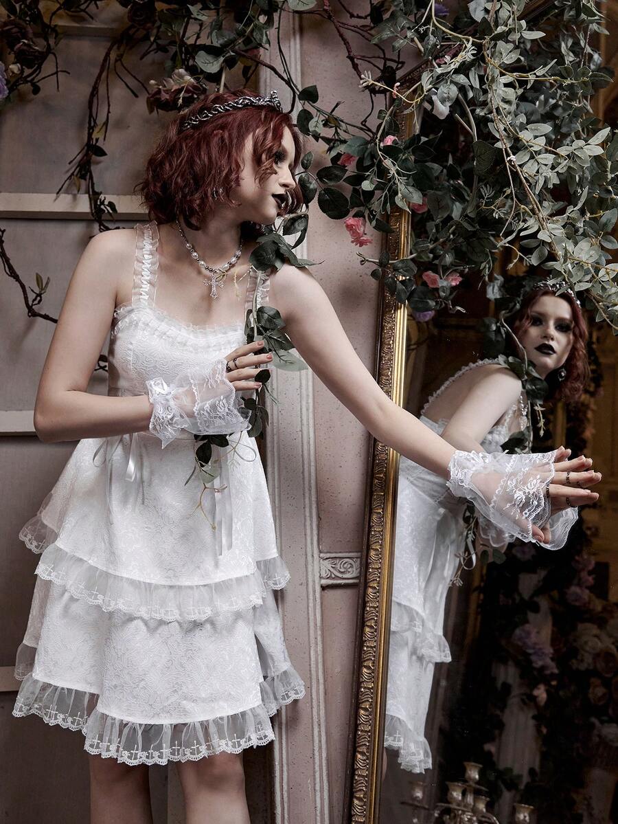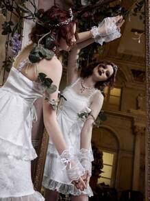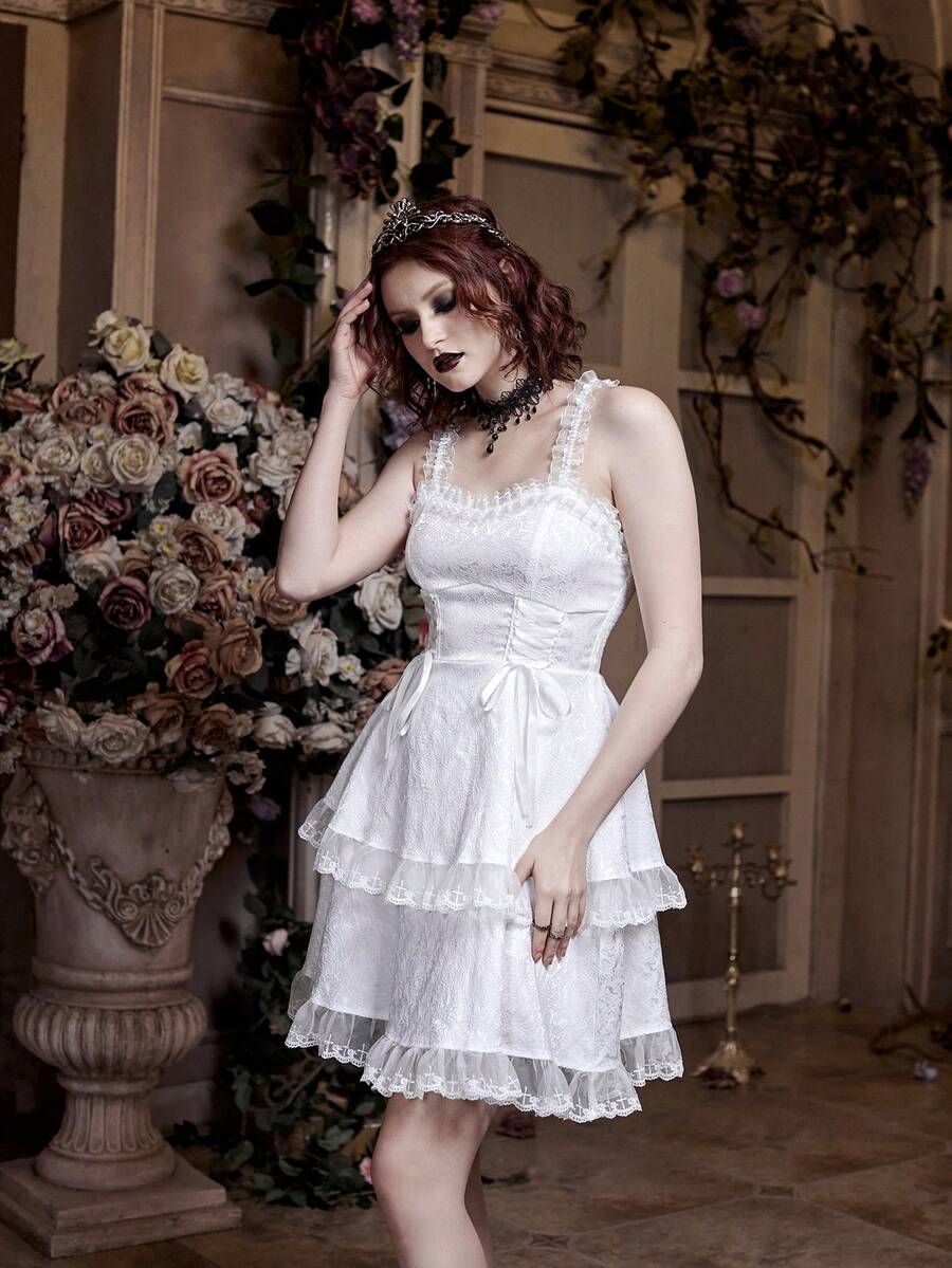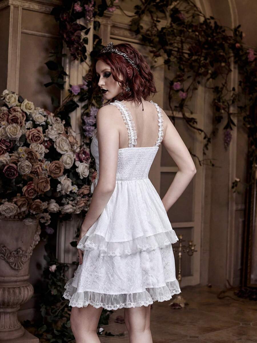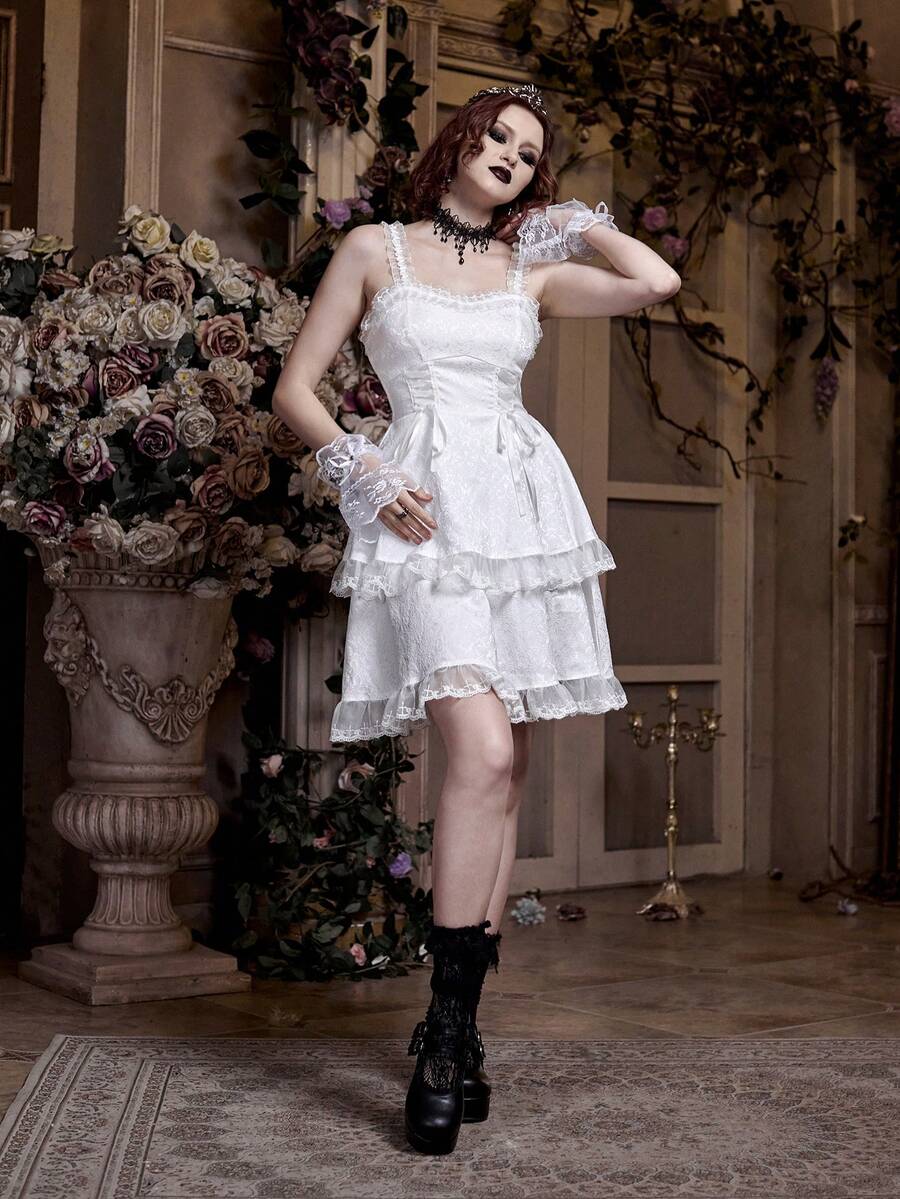 Goth Solid Lace Up Frill Trim Ruffle Hem Cami Dress