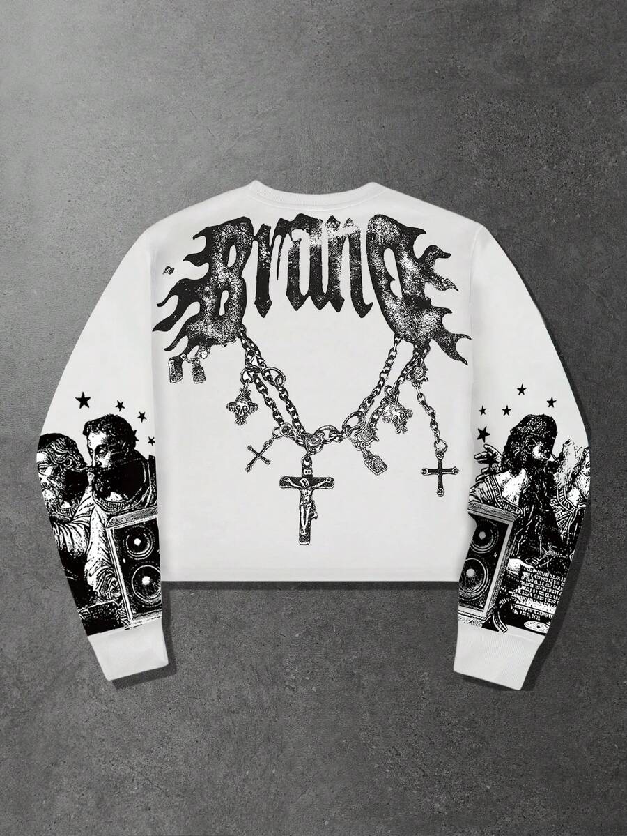 Goth Spring Casual Graphic White Men'S Street Style Casual Printed Pullover Pullover Sweatshirt