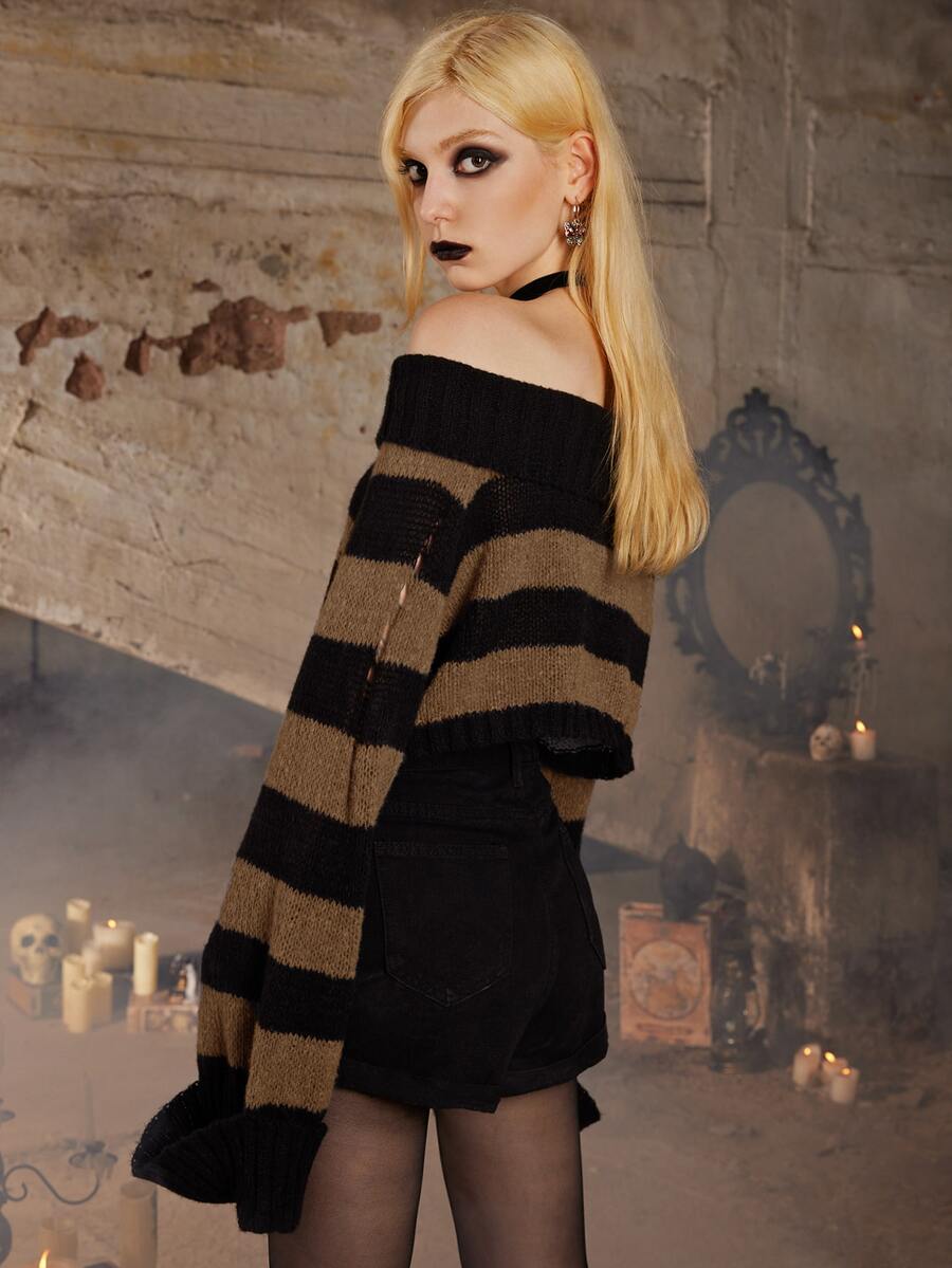 Goth Striped Ripped Crop Sweater