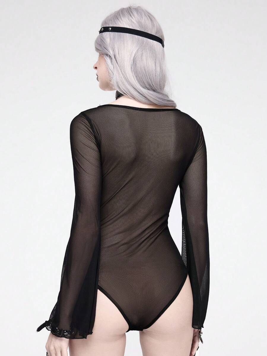 Summer Beach Goth Snake Print Embroidery Mesh Sheer Bodysuit