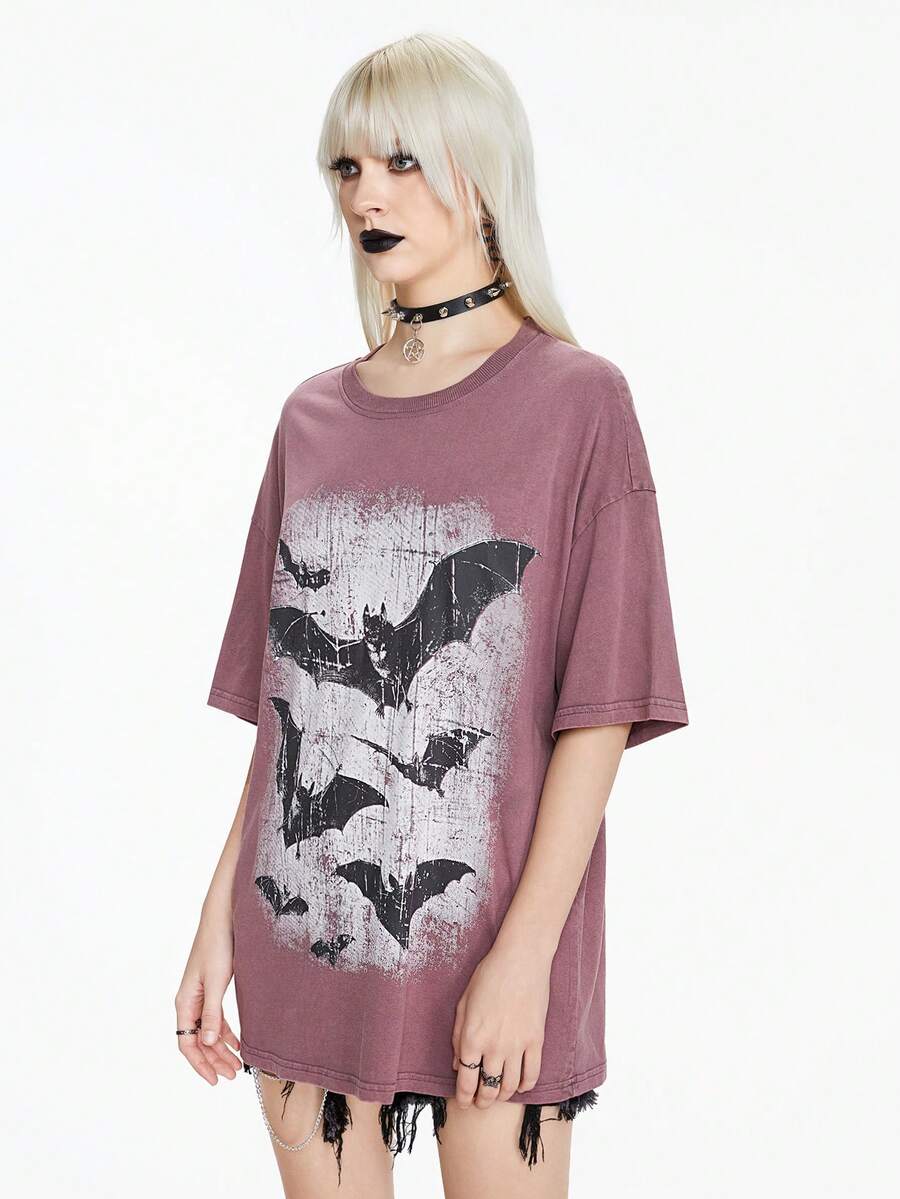Goth Summer Fashion Distressed Bat Print T-Shirt