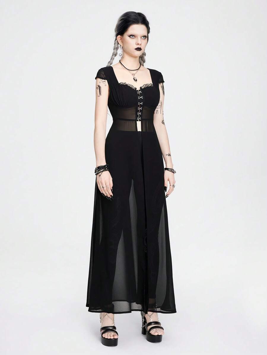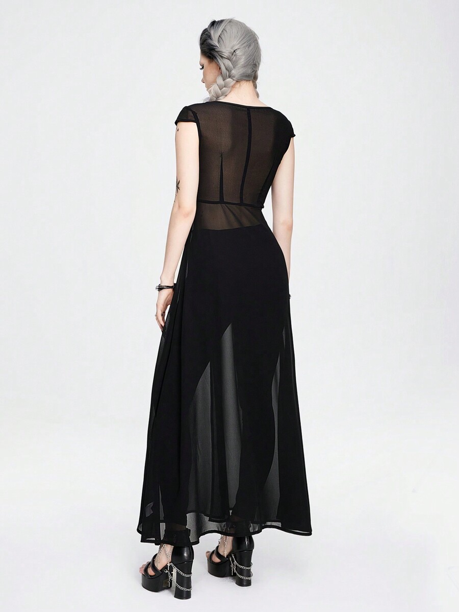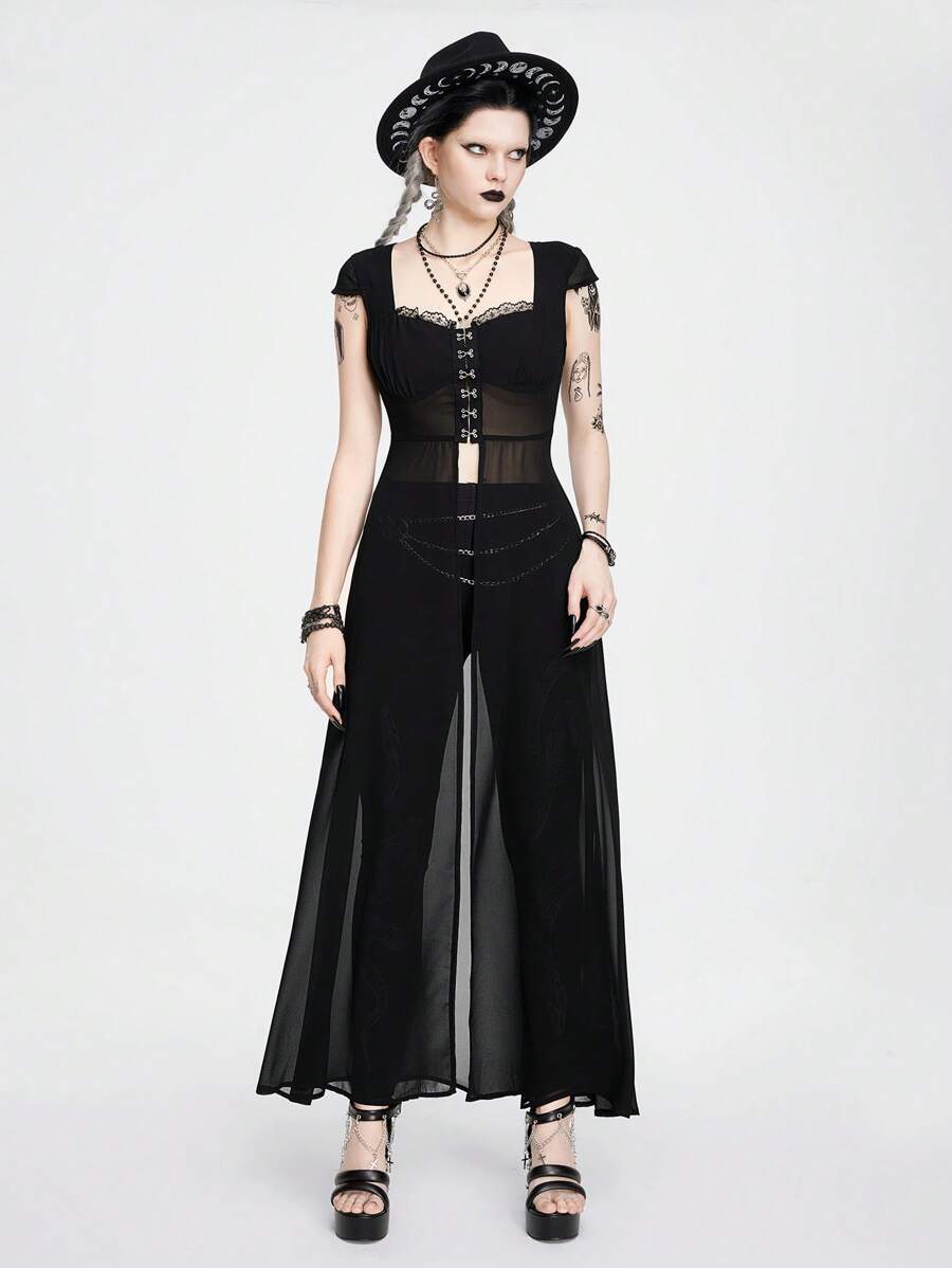 Summer Gothic Style Women's Chiffon See-Through Lace & Mesh Contrast Beach Cardigan