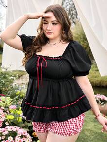 Goth Summer Plus Size Women Vintage Romantic Puff Sleeve Cinched Waist Doll Collar Birthday Blouse
