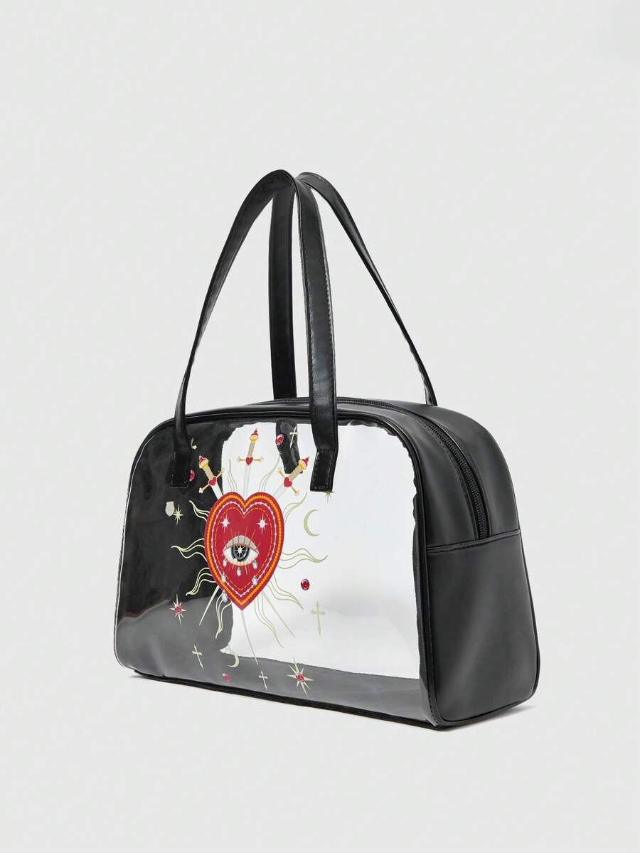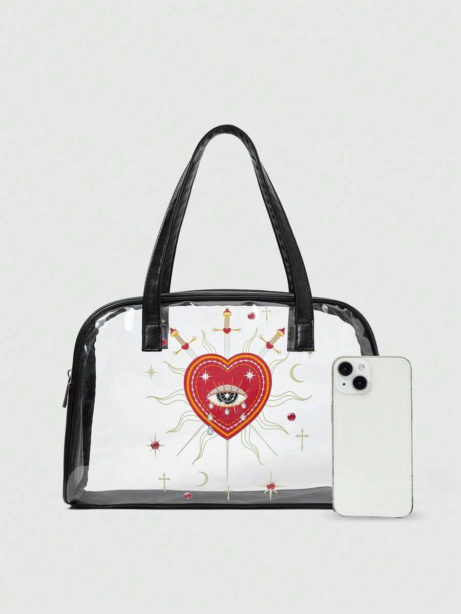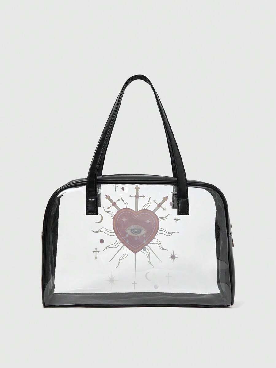 Goth Transparent Handbag Fashionable Portable Large Capacity Kawaii Cosmetic Organizer Makeup Bag, Suitable For Travel, Beach, Resort