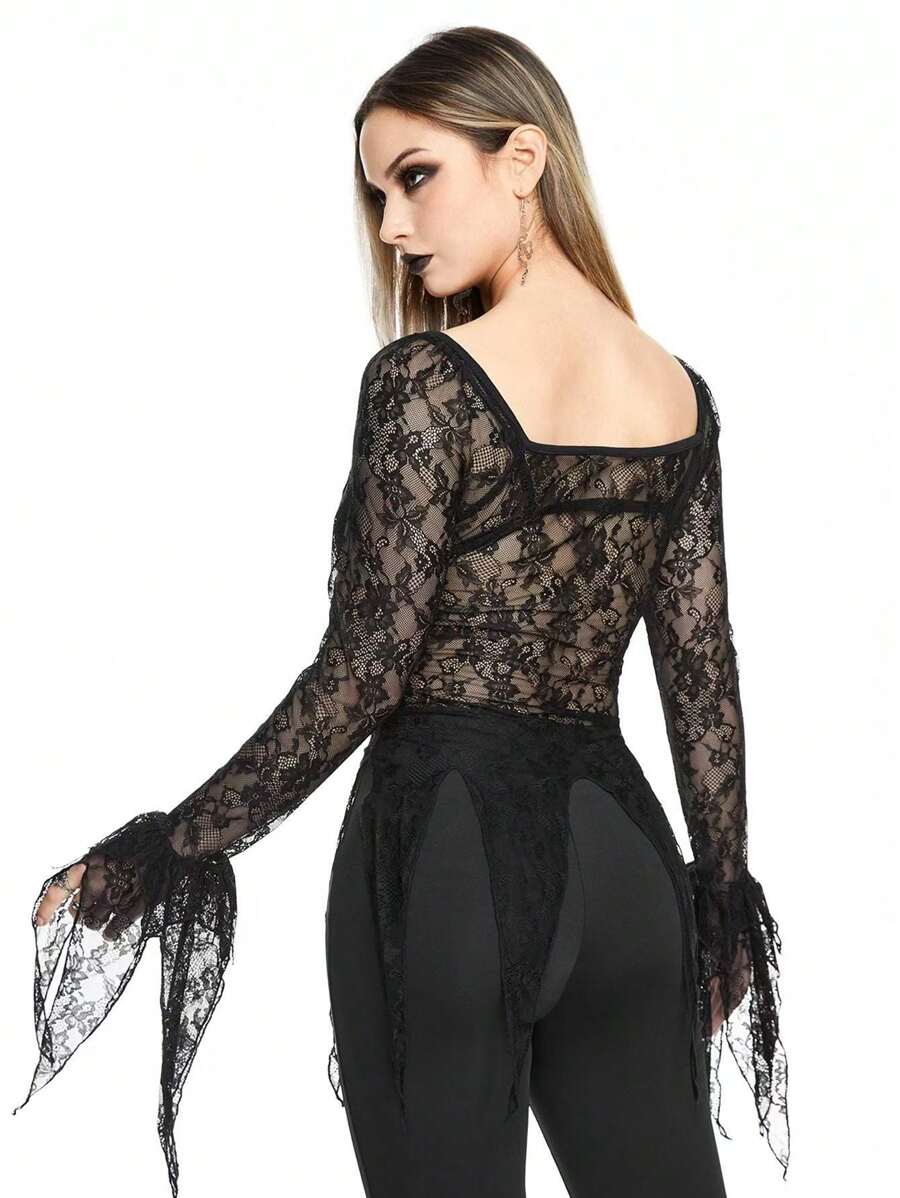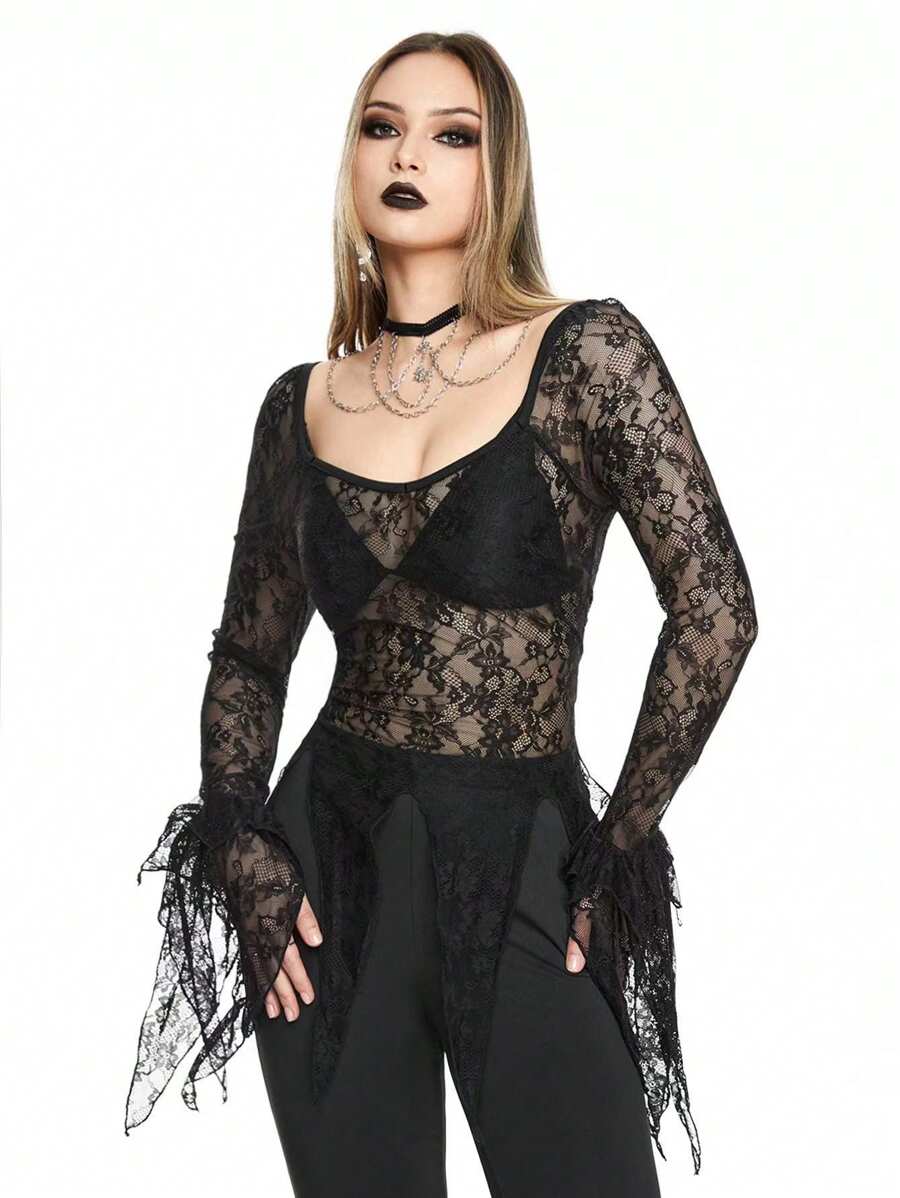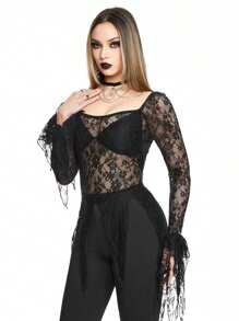Goth Vintage Gothic Sexy Lace See-Through Top For Women